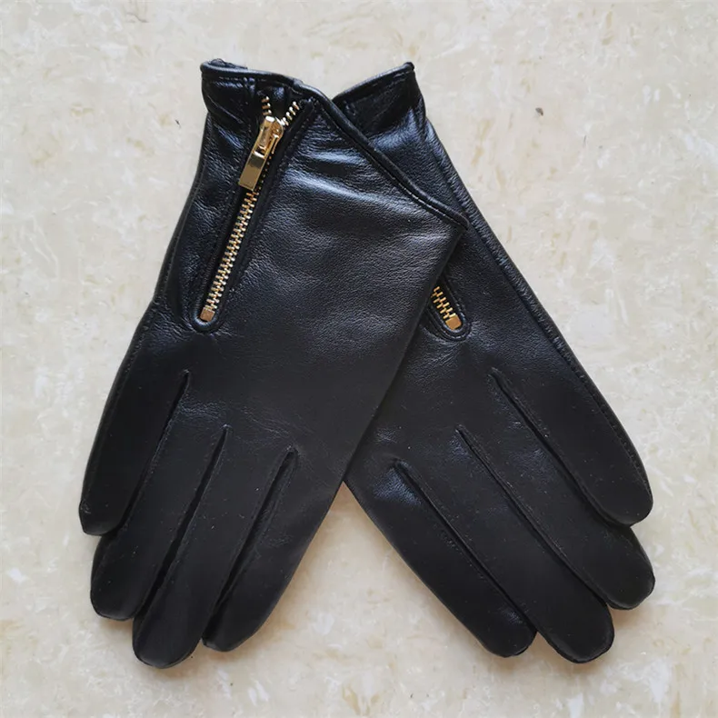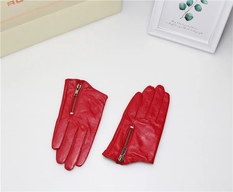 Женские перчатки из натуральной кожи, женские перчатки из овечьей кожи с пятью пальцами, короткие стильные модные Элегантные Дизайнерские перчатки на молнии черного и красного цвета TB10