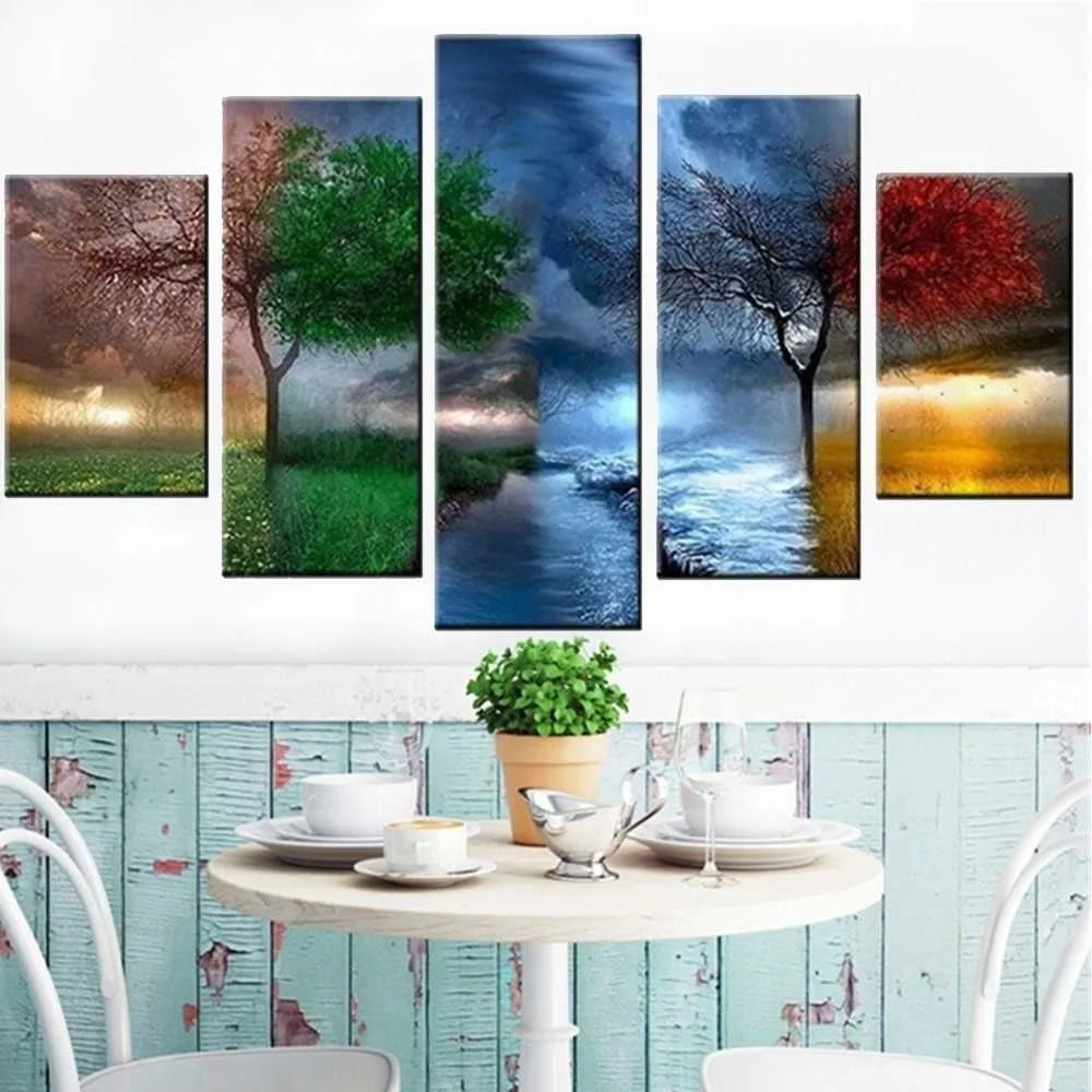Название продукта:Алмазная вышивка крестиком на рисунке, ландшафтные камни в форме ромба дрель 5D Алмазная вышивка сезона деревья украшения дома 5 шт./компл.