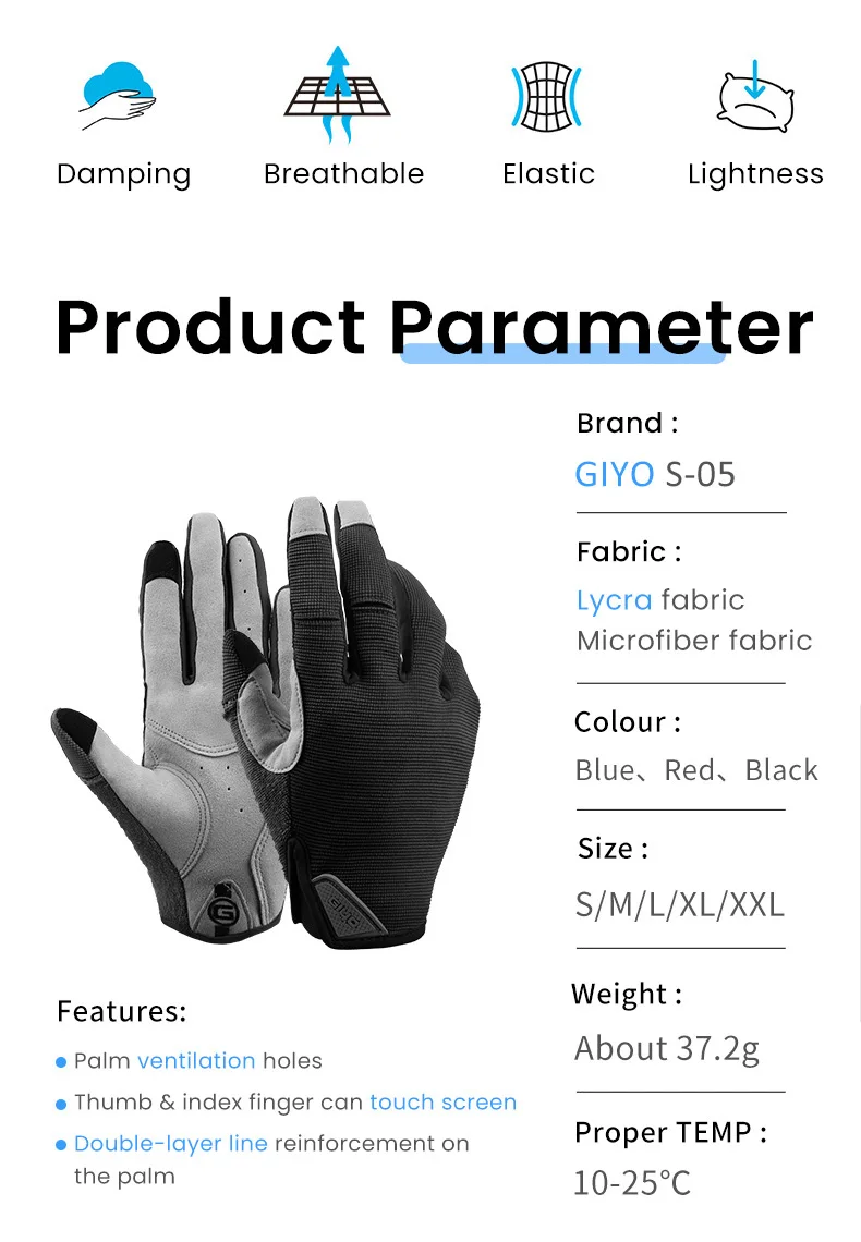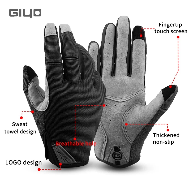 Перчатки для велоспорта Giyo, длинные митенки из лайкры, с пальцами, Нескользящие, для сенсорных экранов, велосипед дорожный