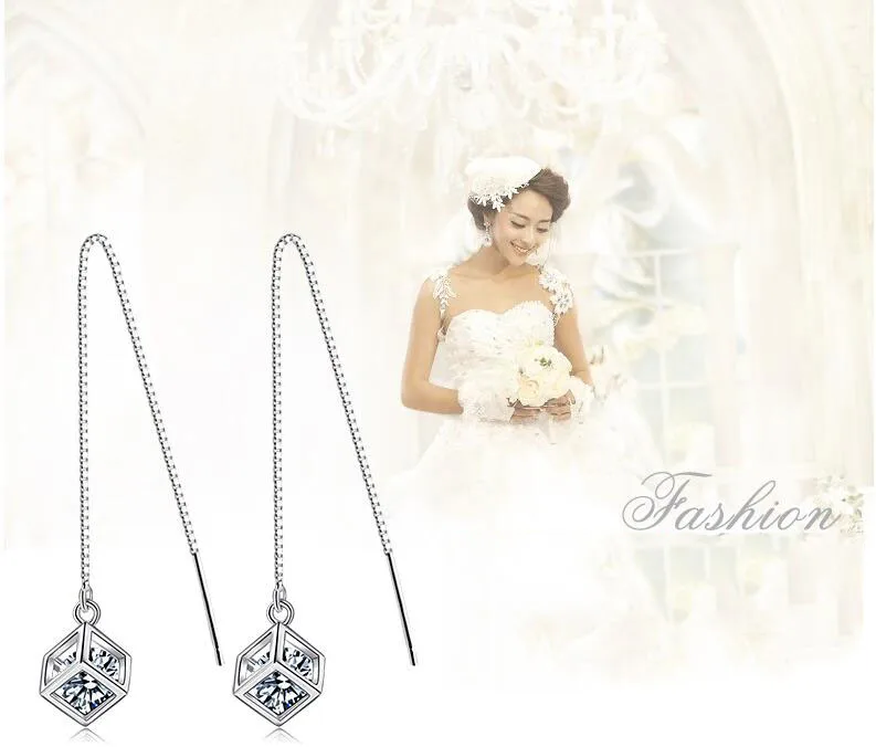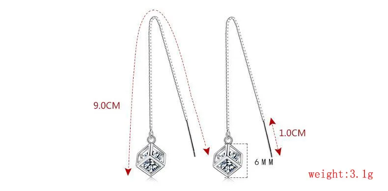 Женские серьги-подвески с фианитами 0,5 карата, серебристого цвета