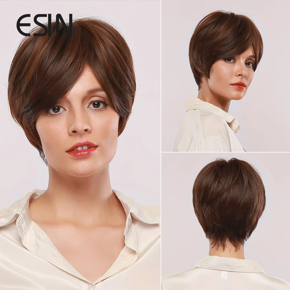 Esin натуральные черные прямые парики с челкой для женщин термостойкие короткие волосы парик Синтетический ежедневный