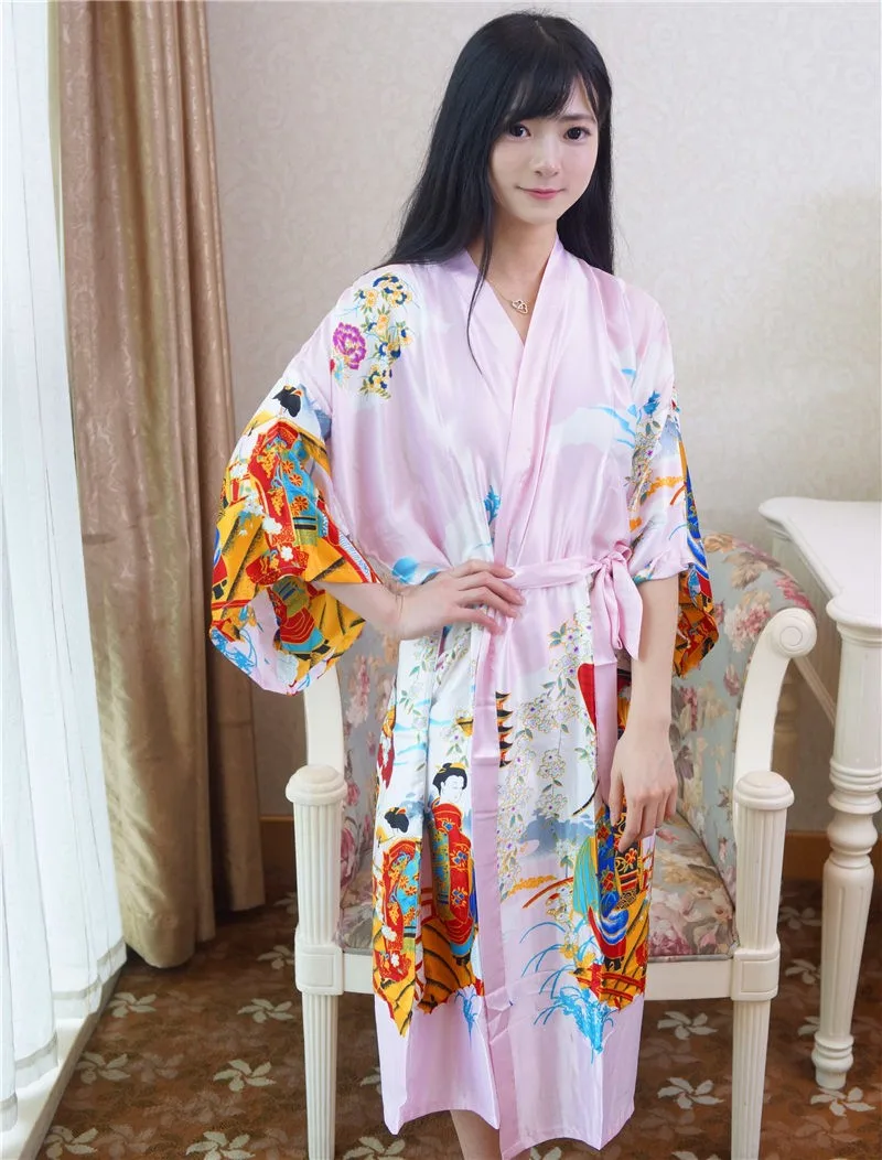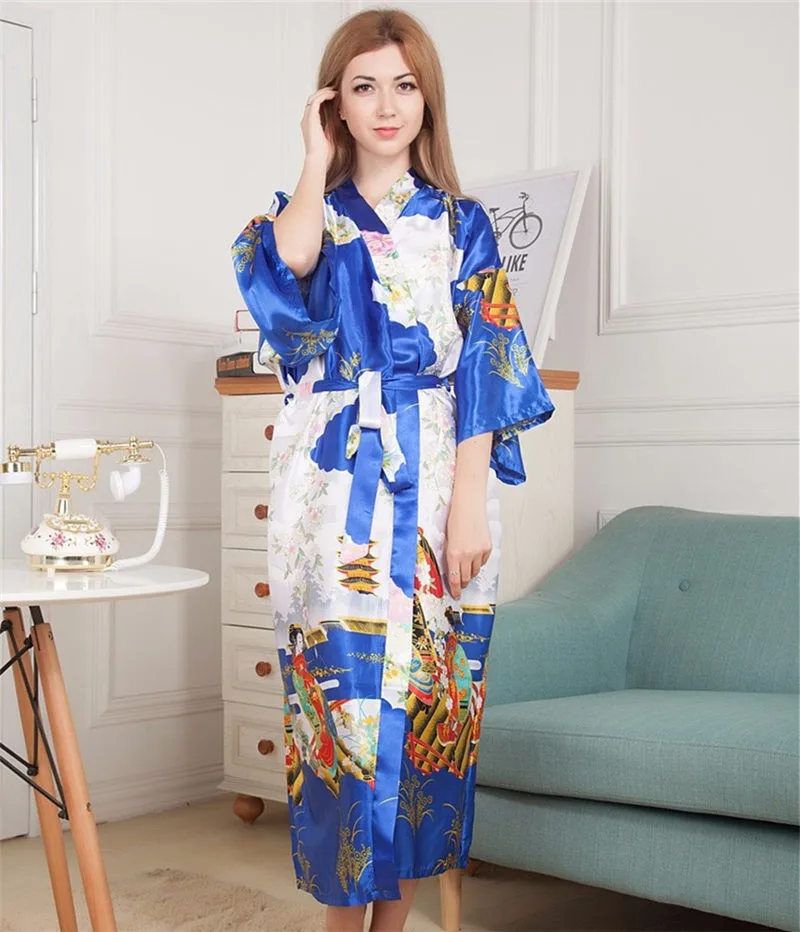 Халат женский из искусственного шелка, длинный, черный, на лето, 036