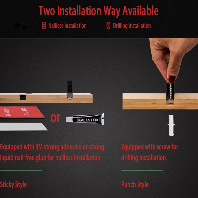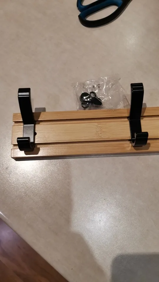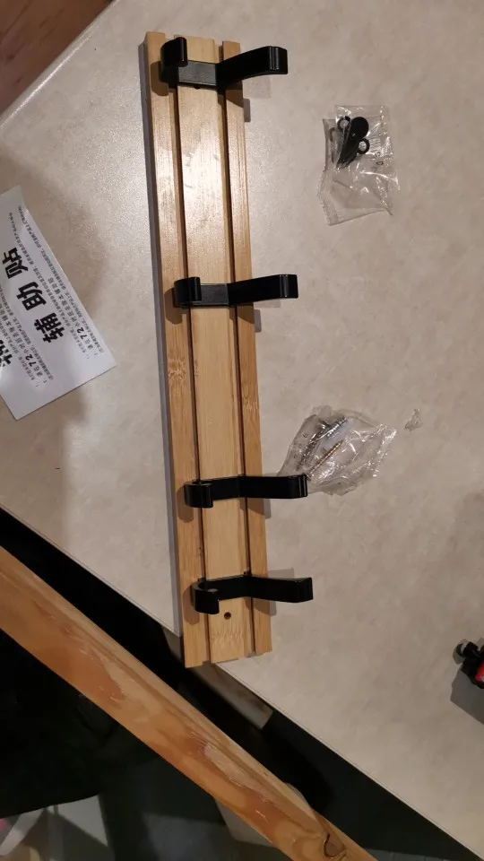 Tal cual la descripción. La madera es bambú y llega con la opción de tornillos o pegamento.