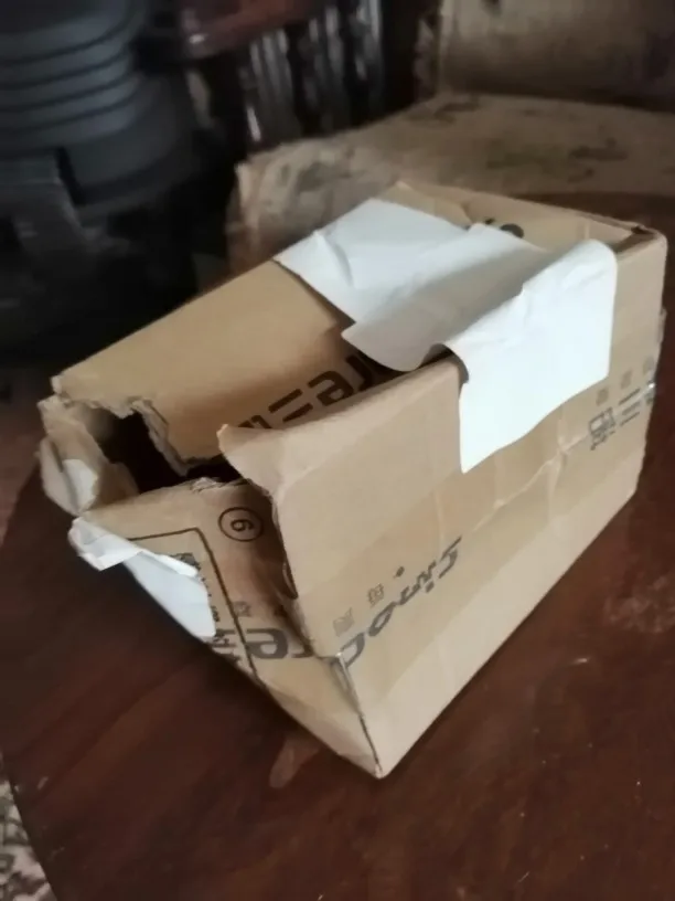 В таком виде прибыла посылка. Заказ цел, даже странно. Коробка порвана, с дырой, по периметру и сверху заклеена поозрачным скотчем. Достала коробочки с полосками и ланцетами через эту дыру. Очень большая коробка для упаковки таких маленьких заказов.
