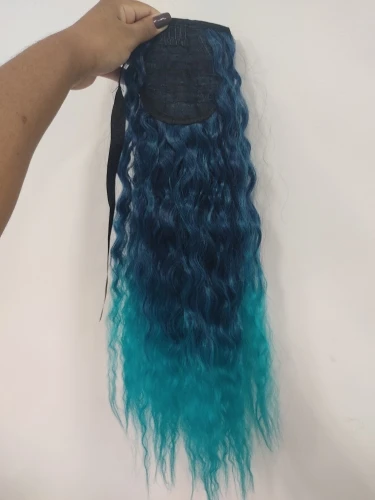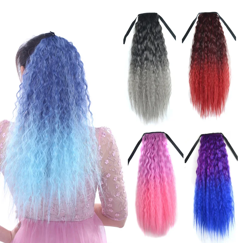 Jeedou 55 см синтетические кудрявые вьющиеся волосы хвост синий розовый красный цвет Омбре лента шнурок конский хвост косплей наращивание волос