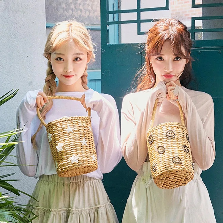 Пляжная сумка, летняя, новая, наплечная, в японском и южнокорейском стиле, Плетеная соломенная сумка, женская сумка, маленькая, свежая