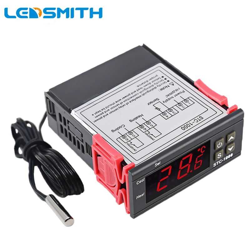 Цифровой термостат переменного тока 110-220 в 12 В постоянного тока, контроллер температуры для инкубатора 10 А, реле нагрева, охлаждение, терморегулятор STC 1000