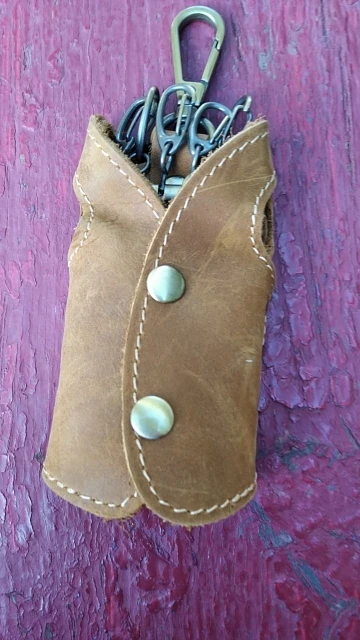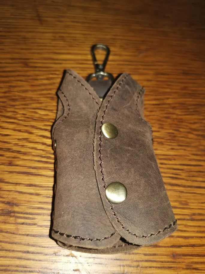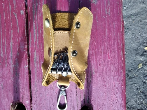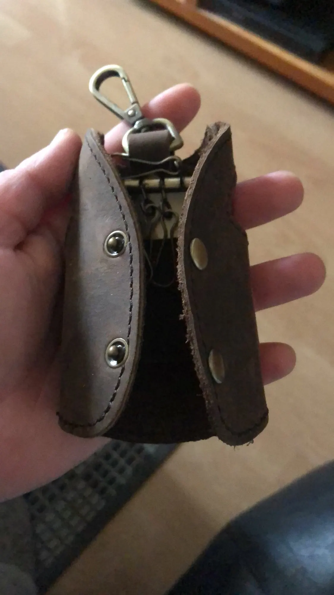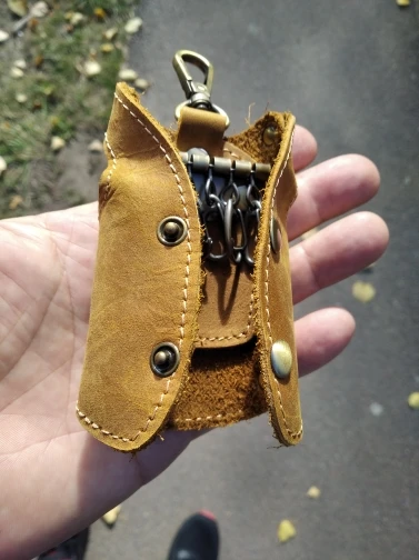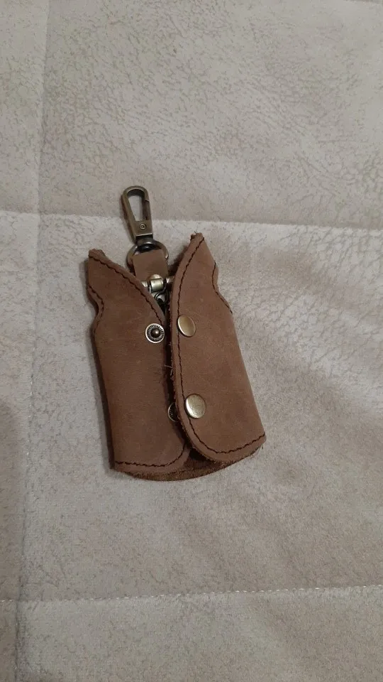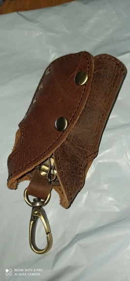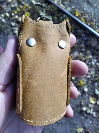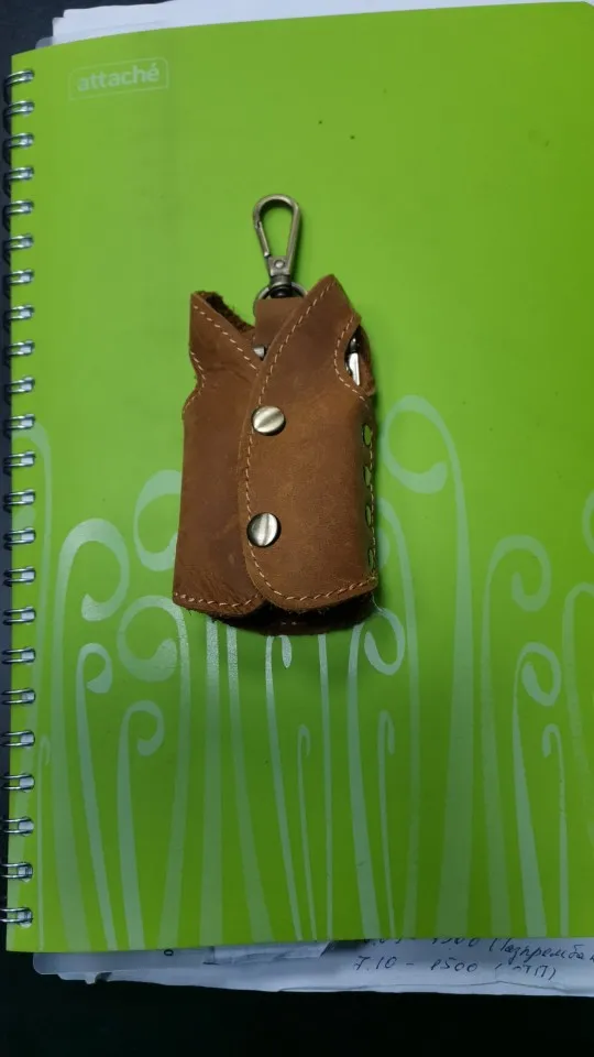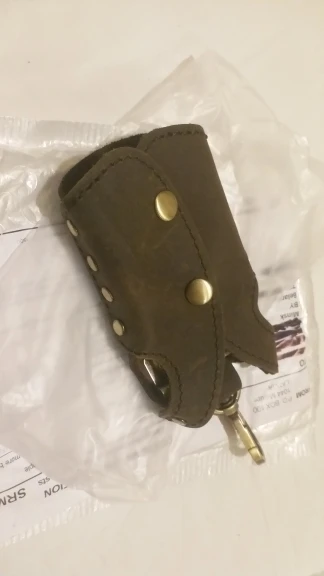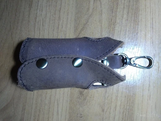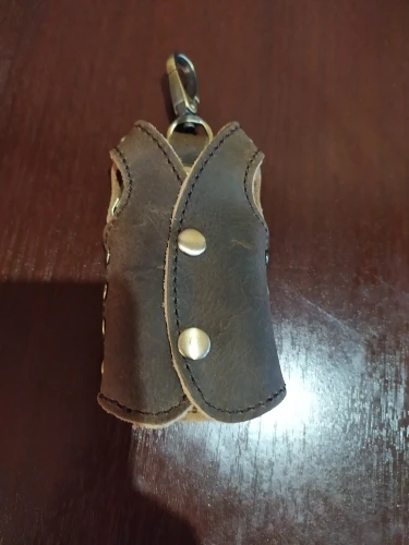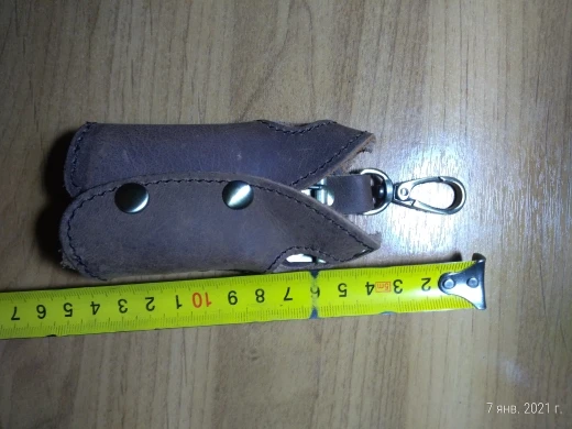 Отличный чехол ключница. из натуральной кожи. Пахнет кожей. Немного маловат оказался, с ключами от машины и брелоком сигнализации не застёгивается или если сильно постараться то можно. если для обычных ключей, то в самый раз. Очень доволен покупкой. Очень быстро отправили и быстро доставили. 16 дней в Барнаул, но это наверное потому что объединили посылки в одну большую.