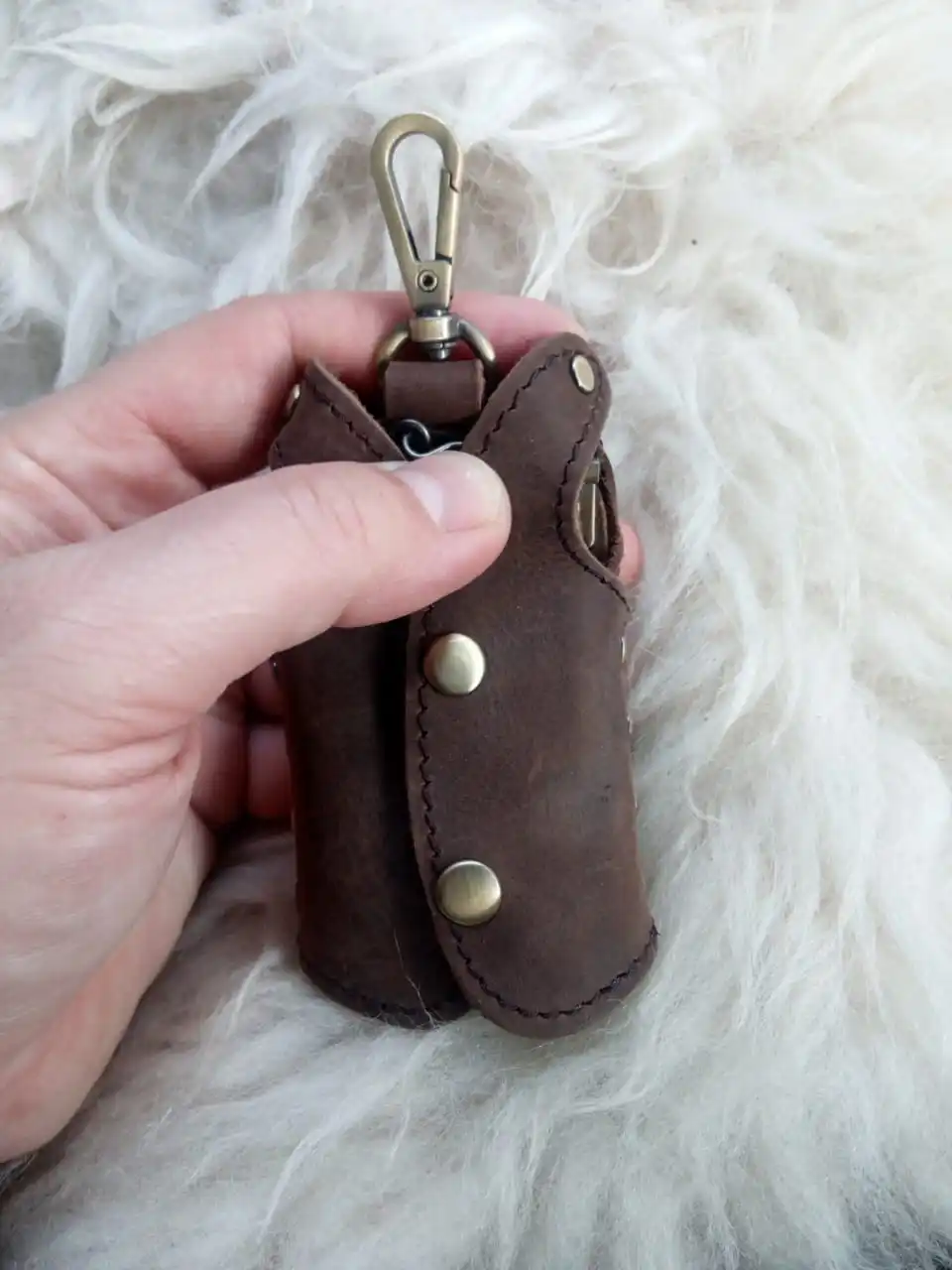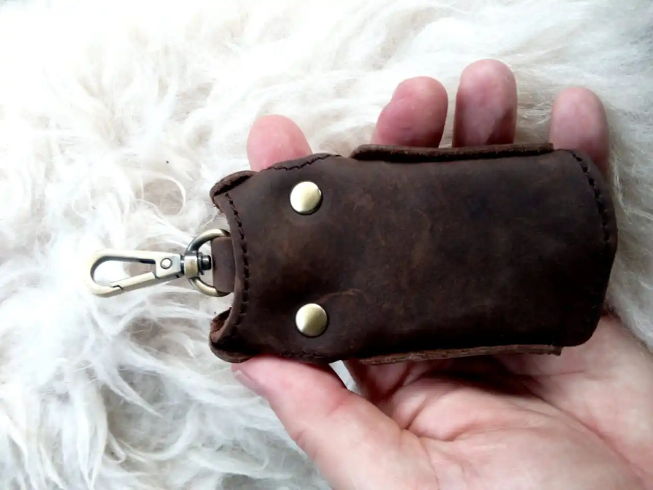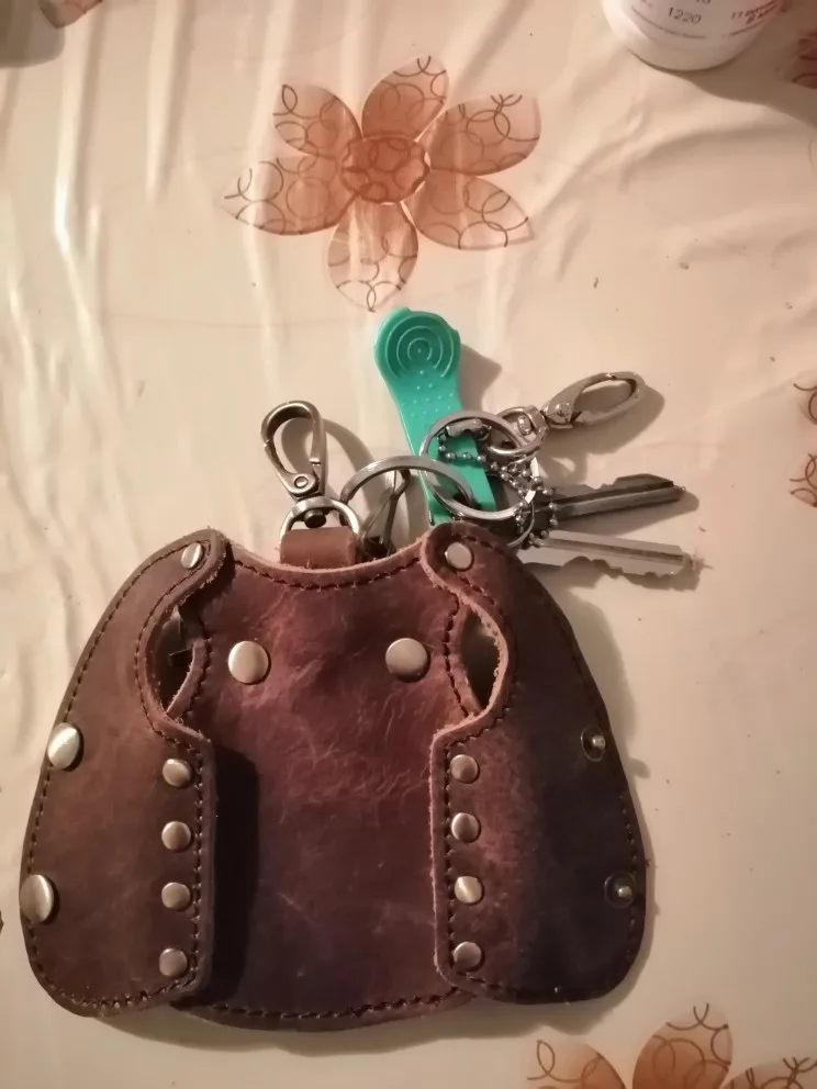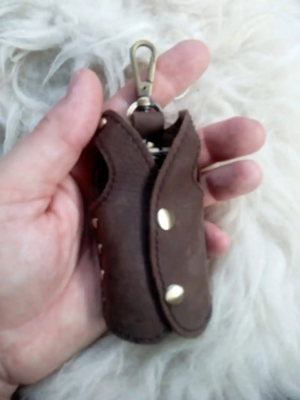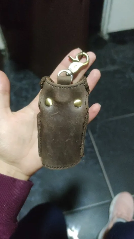 Отличный чехол ключница. из натуральной кожи. Пахнет кожей. Немного маловат оказался, с ключами от машины и брелоком сигнализации не застёгивается или если сильно постараться то можно. если для обычных ключей, то в самый раз. Очень доволен покупкой. Очень быстро отправили и быстро доставили. 16 дней в Барнаул, но это наверное потому что объединили посылки в одну большую.