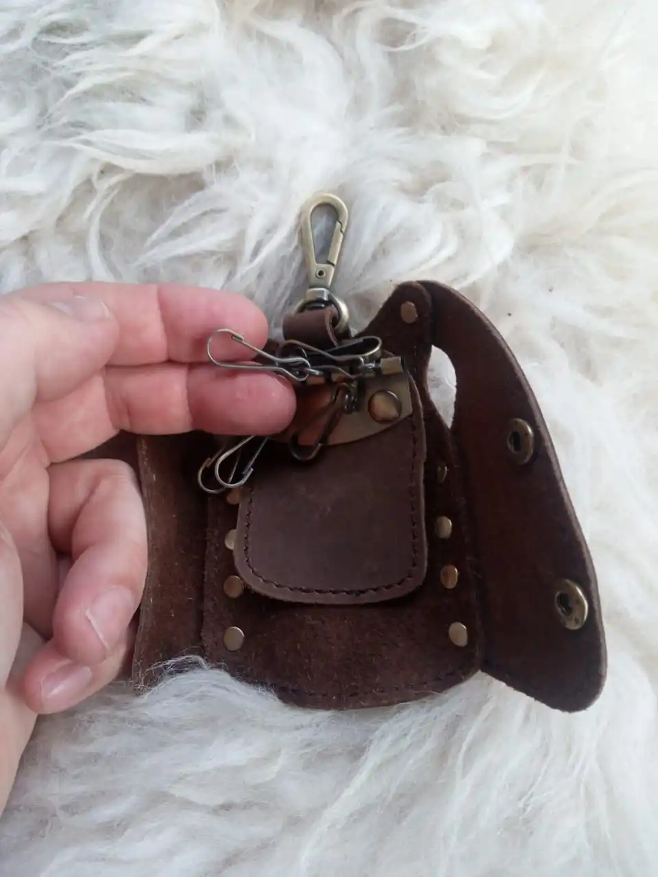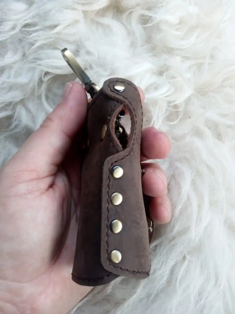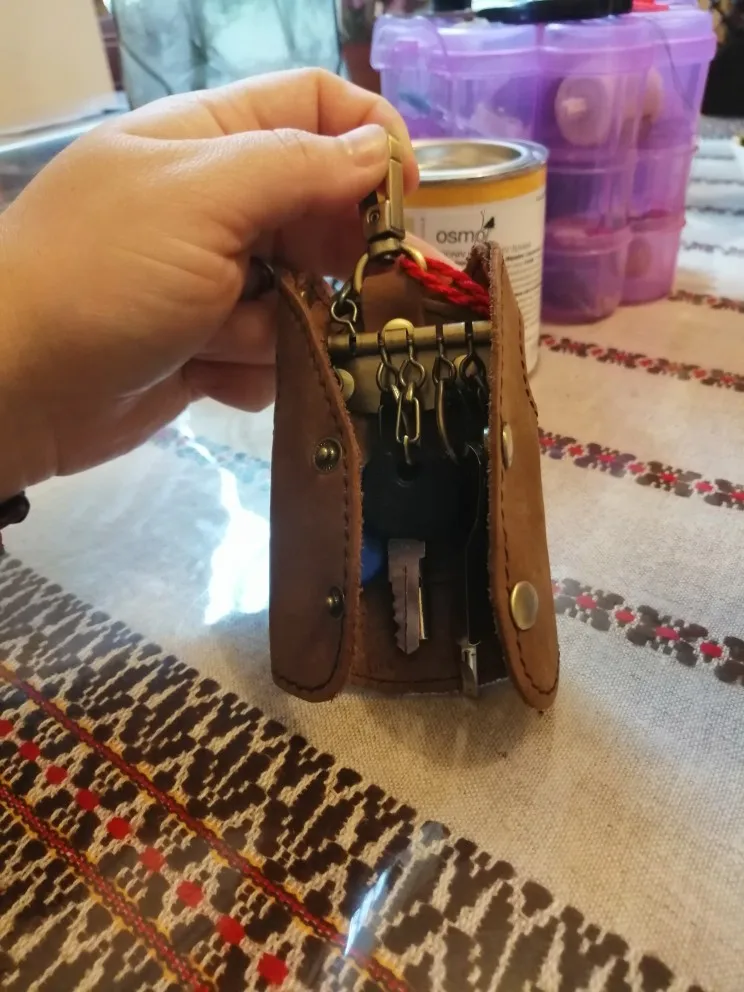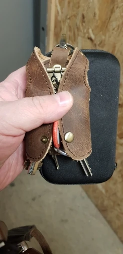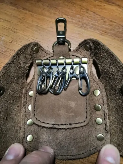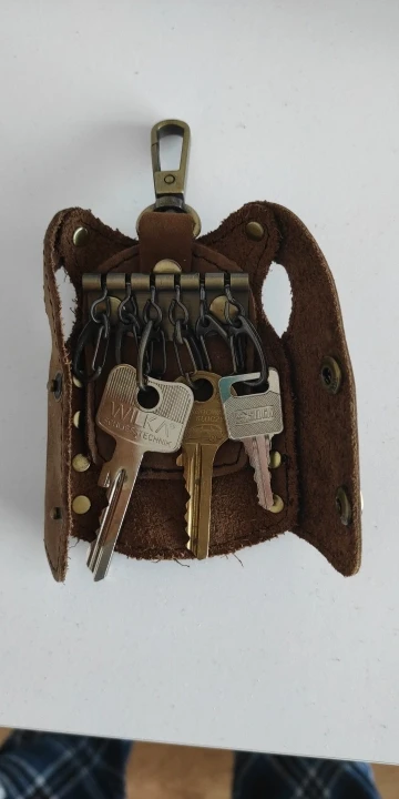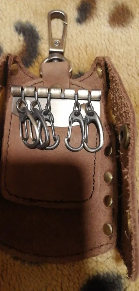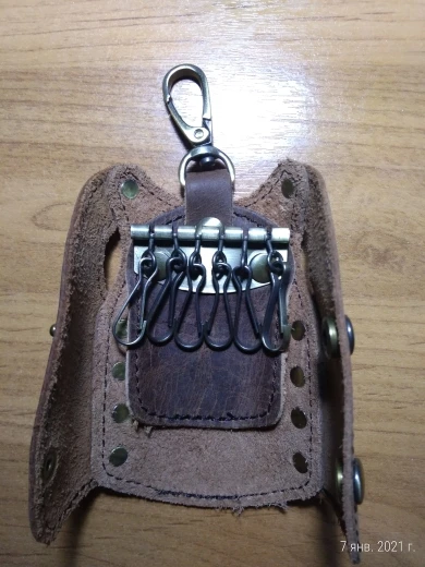 Хорошая ключница, красивый дизайн. Кожа натуральная. Но мелковата даже для обычных ключей. Хвосты ключей выглядывают из прорези, поэтому думаю как укоротить карабины.