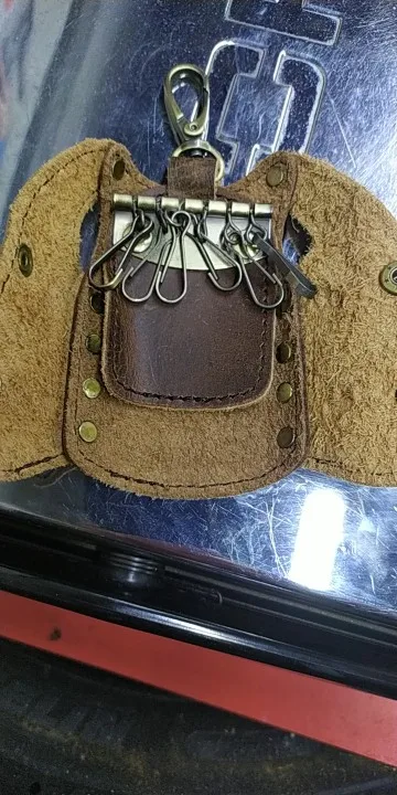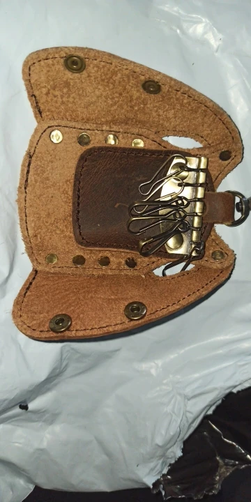 Получил ключницу.Кожа натуральная,но..на этом плюсы закончились.Попался брак.Не хватает заклёпки с боку.Одной полностью не хватает, второй-внутренней ее части.Ключница просто расползется.Написал продавцу и приложил фото.Он ответил лишь-"Спасибо,друг!!".И кстати...Клепок не было в пакетике с ключницей,значит ее отправляли уже без них.Продавец совершенно не надёжный и не отвечает за качество товара.Фото приложу