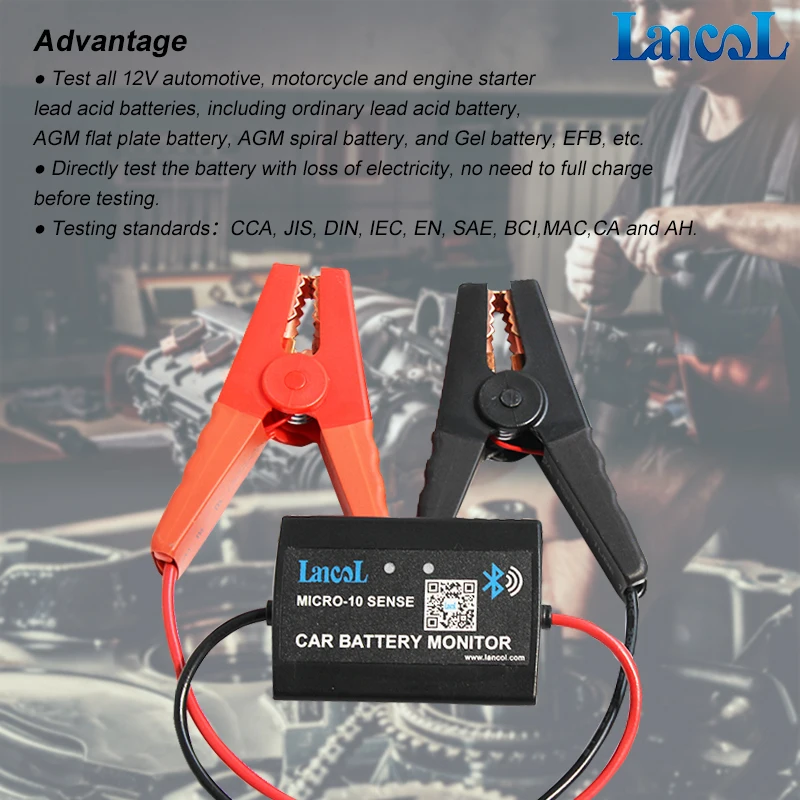 MICRO-10-это новейший продукт автомобильного монитора батареи R & D компании Lancol, которая соединяет ваш смартфон и ваш автомобильный аккумулятор. Он работает с технологией измерения проводимости.