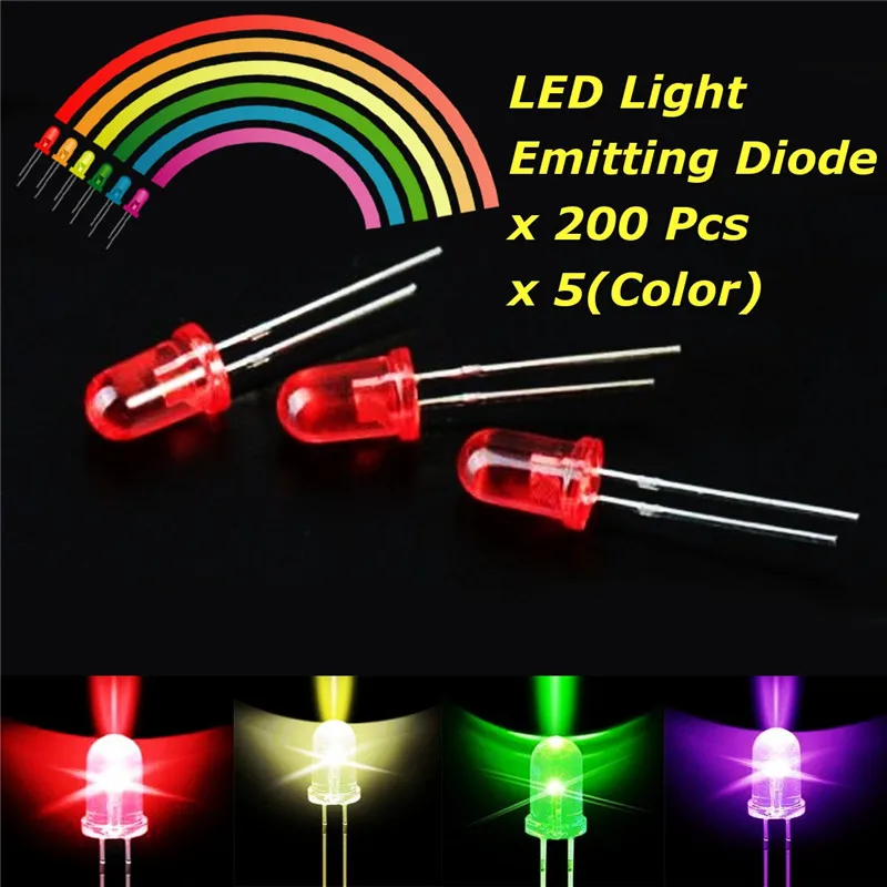 Набор Разноцветных СВЕТОДИОДНЫХ ламп сделай сам, универсальные Диоды 3 мм 3 в 20 мА, красный зеленый синий желтый белый, s Набор диодов, 200 шт.