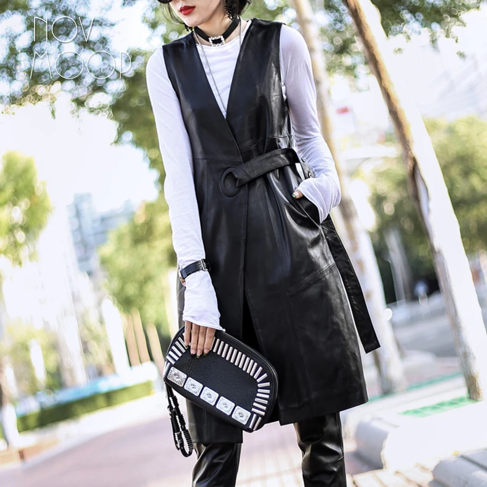 Жилет женский из натуральной кожи, черного цвета, LT1905