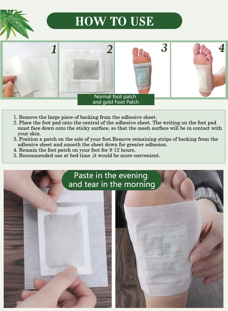 Основным эффектом детоксикации ног является детоксикация. Пластыри впитывают ваши токсины после использования в течение всей ночи. Вы можете увидеть это из-за изменения цвета после его использования. Чем больше грязи вы видите, тем больше токсинов впитывается. После последовательного использования в течение определенного периода, они будут очищаться каждое утро. Это означает, что большинство токсинов в вашем теле уже выпущено. Помимо ваших ног, вы также можете нанести Эти подушечки на другие части вашего тела, включая спину, колени, локти и т. д.
