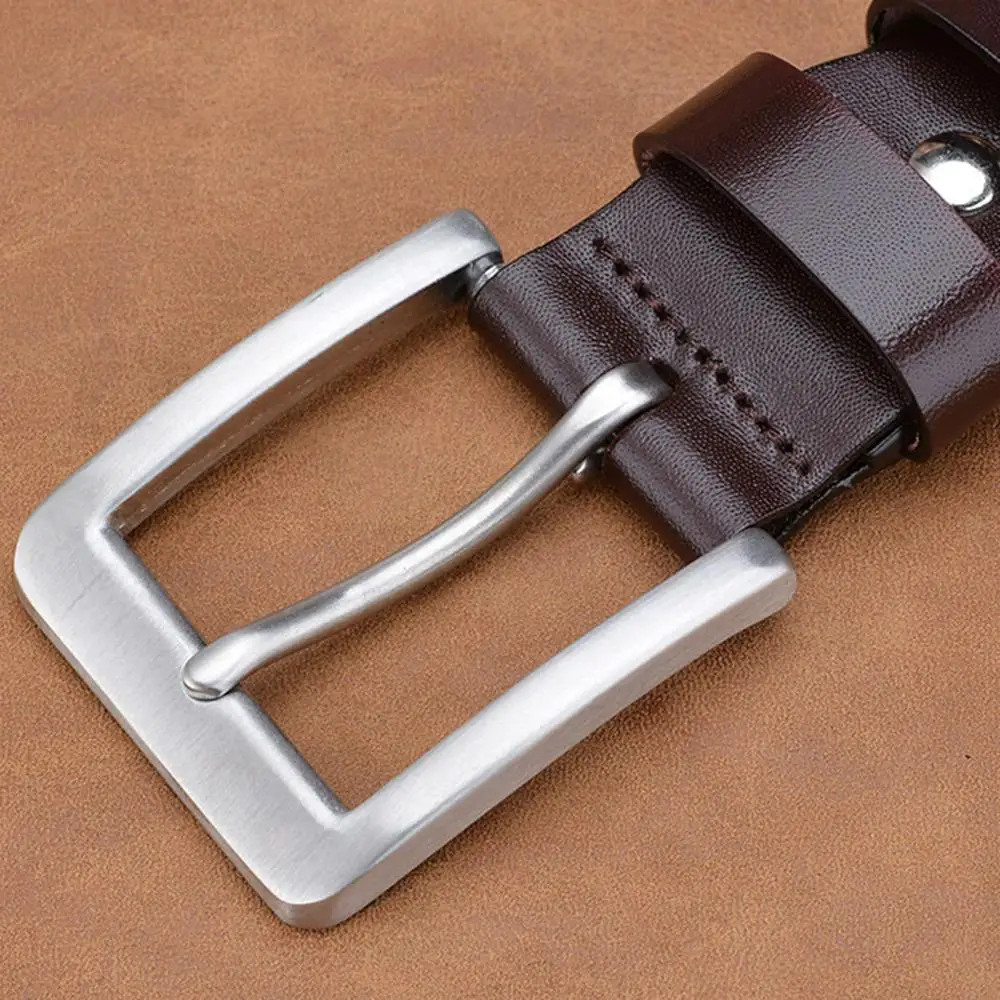 Мужской ремень из воловьей кожи, с металлической пряжкой