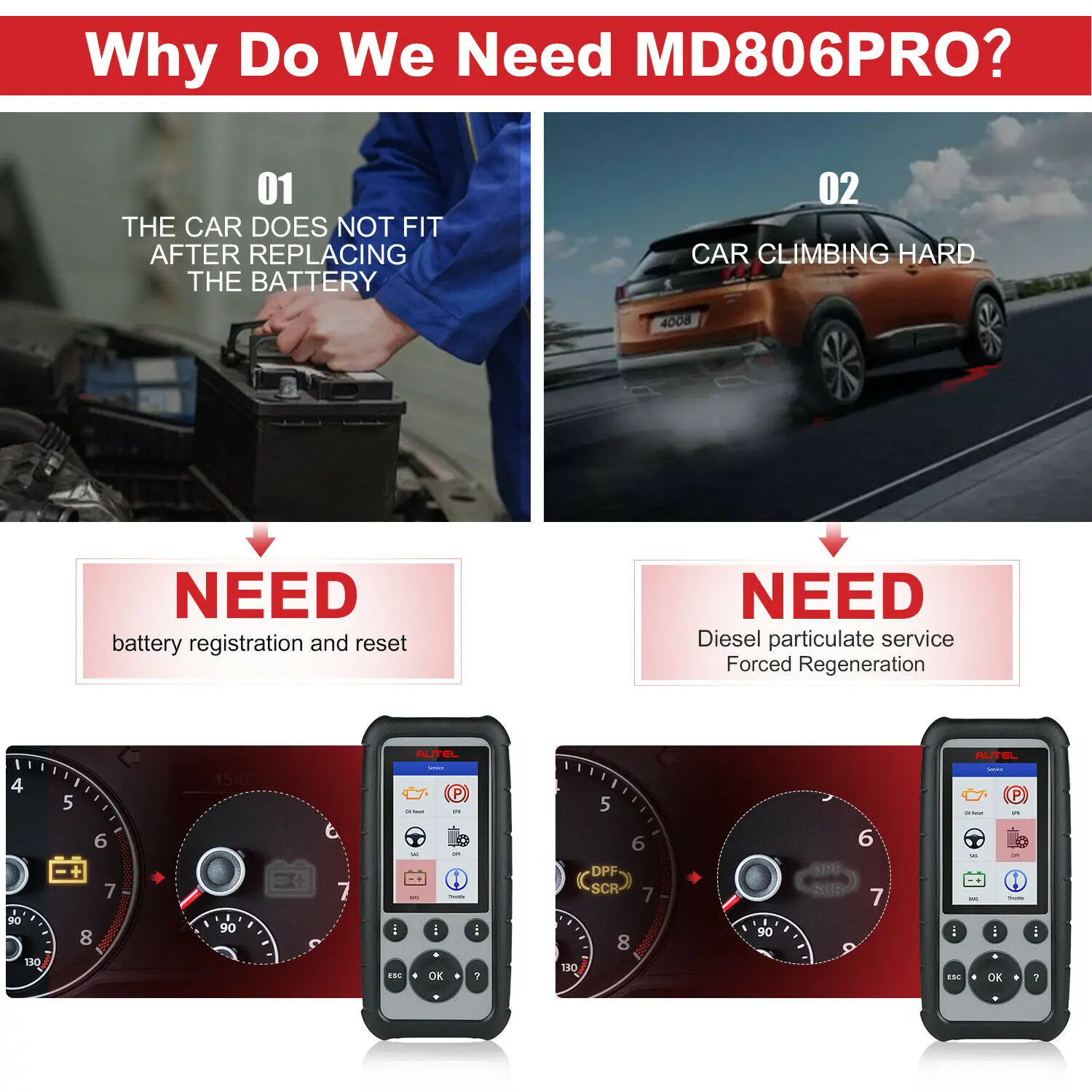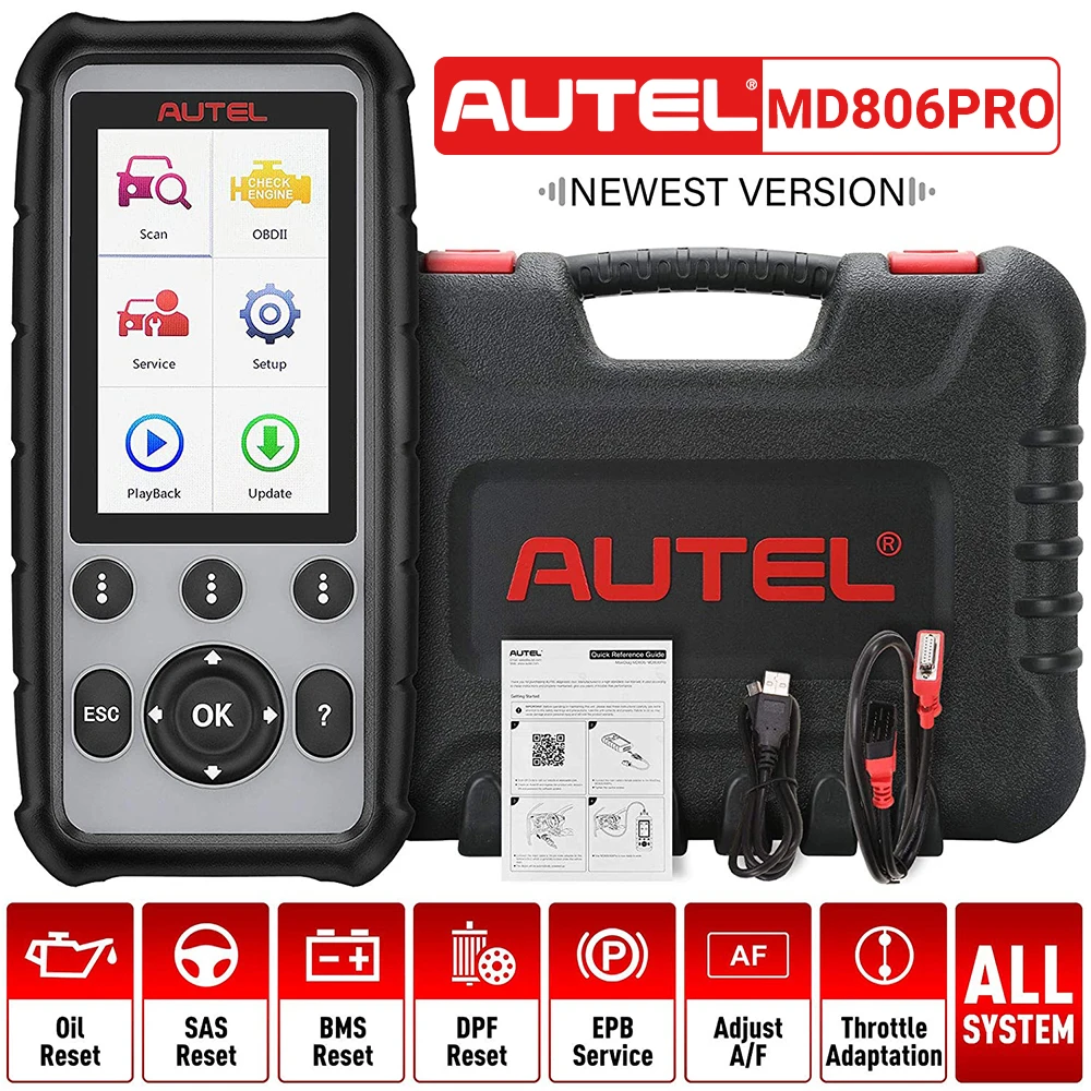 Новый выпуск Autel MD806 PRO-это расширенная версия MD806/MD808.• Все системные диагностики: Autel MD806 PRO предоставляет полные системные диагностики для основных диагностических целей и услуг для всех доступных модулей на транспортном средстве, в то время как MD806/MD808 имеет только четыре системные диагностики для двигателя, передачи, ABS и SRS.• 7 функций обслуживания: Autel MD806 PRO/MD806 специально разработан, чтобы добавить еще 2 специальных функции (соответствие дроссельной заслонки, регулировка A/F), по сравнению с MD808 (только 5 специальных функций).