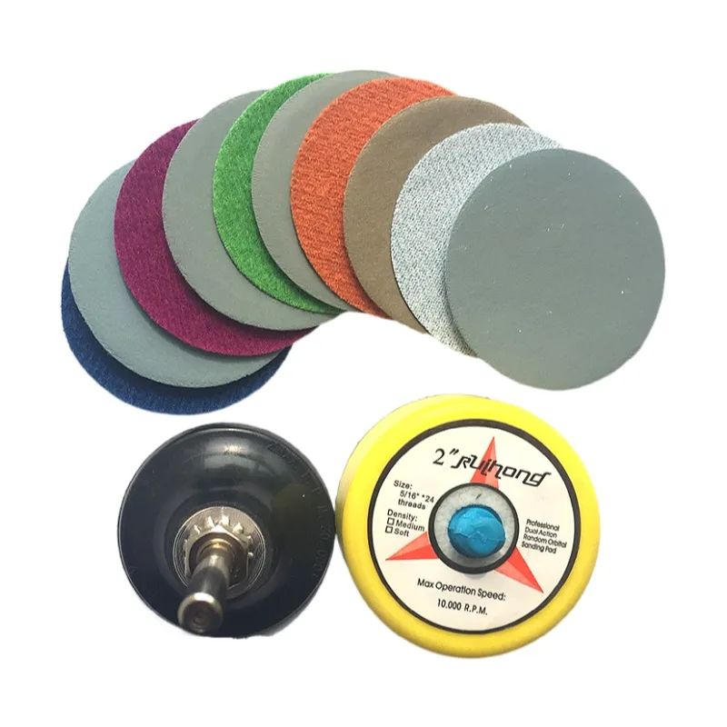 1 шт., держатель шлифовального диска диаметром 2 дюйма, 50 мм, хвостовик 6 мм + 1 шт., 2 отделочная накладка + 10 шт., 2 водонепроницаемых наждачной бумаги