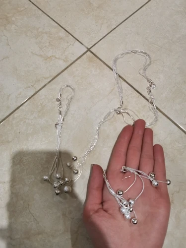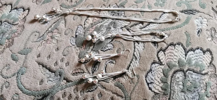 Очень красивый набор. Проба стоит, но есть сомнения, что это серебро, довольно лёгкие изделия. Бусины кажутся пластиковыми. Порадовала доставка - три недели. Спасибо.