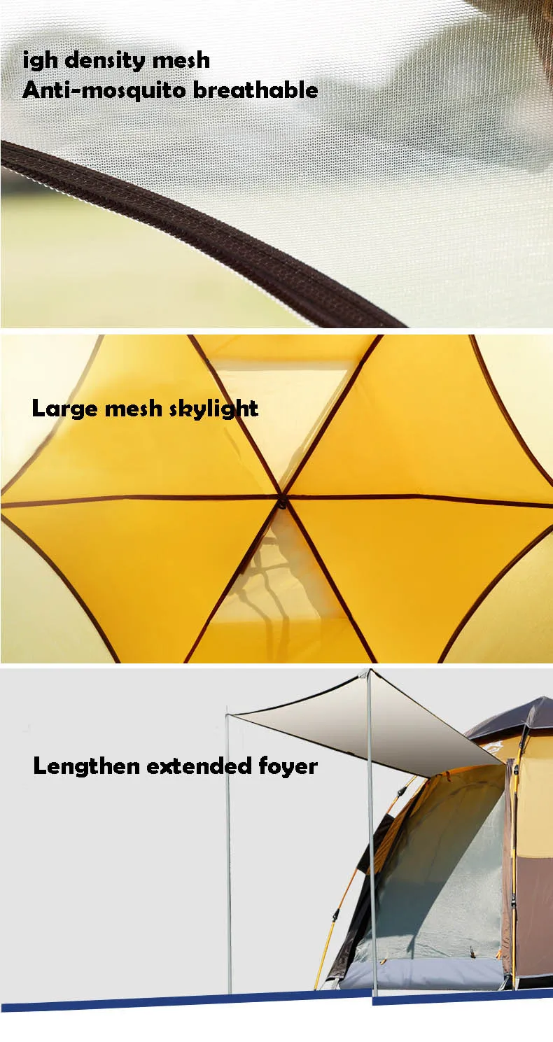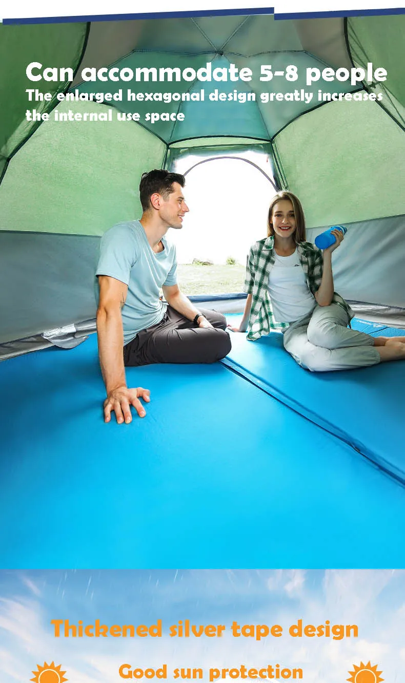 Примечание: Этот тент Может размещаться на 5-8 человек, спящий может удерживать 3-4 взрослых, и это также зависит от размера тела, поэтому, пожалуйста, обратитесь к размеру внутренней палатки.