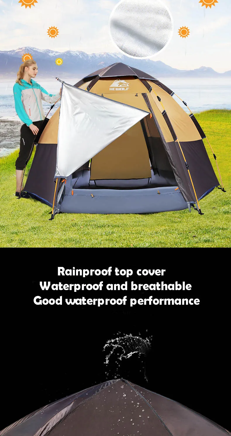 Палатка Hewolf автоматическая для 3-4 человек, вместительная Пляжная палатка, утолщенная, для непромокаемая кемпинговая палатка и кемпинга