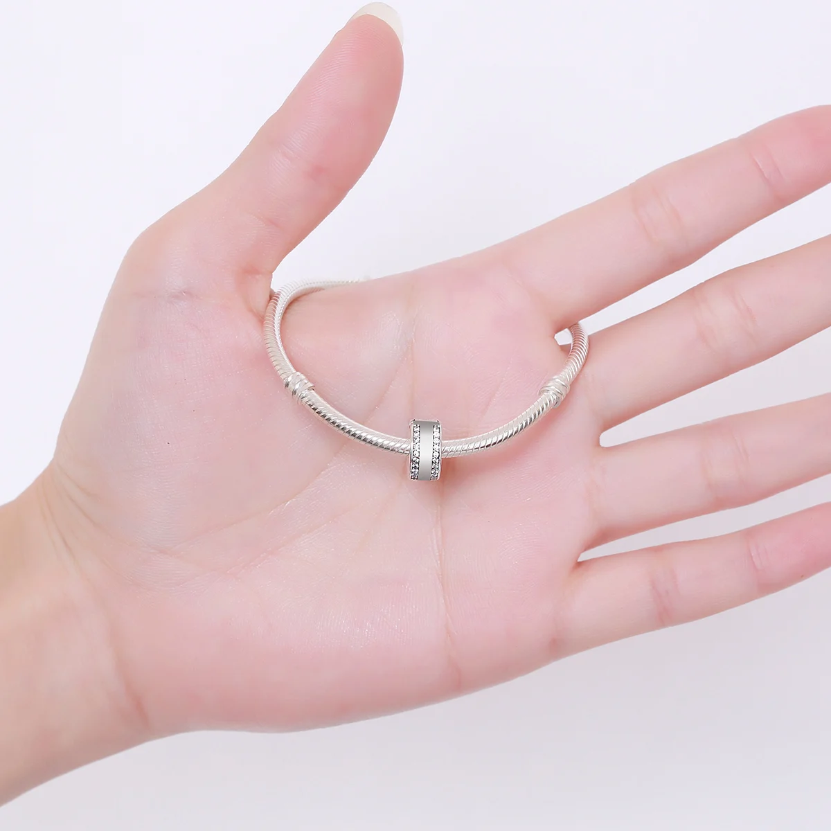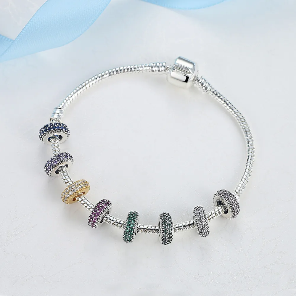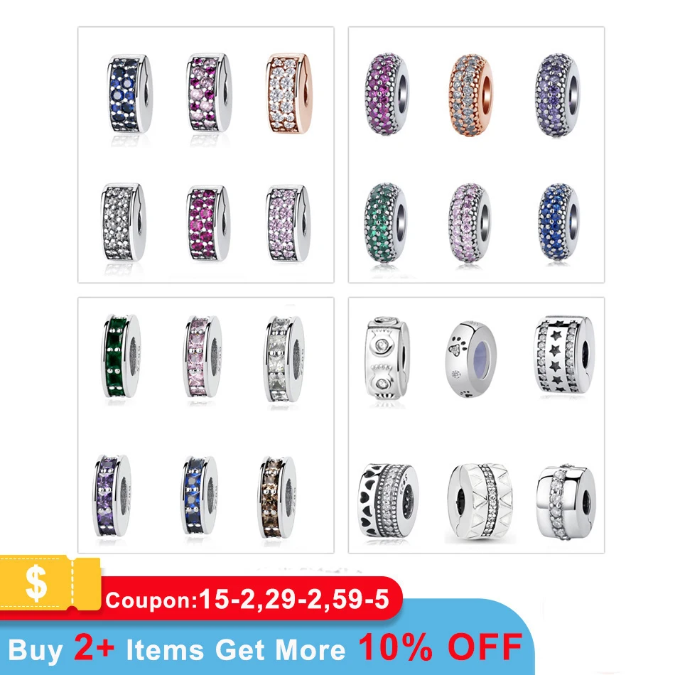 100% серебряные бусины 925 пробы Шарм яркая элегантность клипсы паве CZ шармы подходят оригинальные браслеты для женщин Diy ювелирные изделия