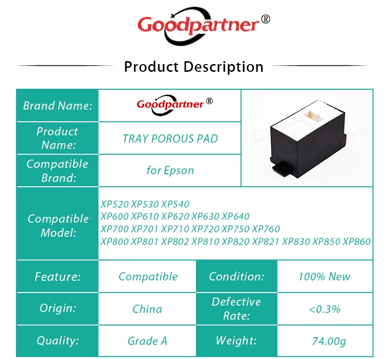 Лоток для пористая подкладка Epson XP760 XP750 XP860 XP720 XP820 XP620 1 шт. x 1611102 XP600 XP610 XP630 XP700 XP710 XP800 XP830