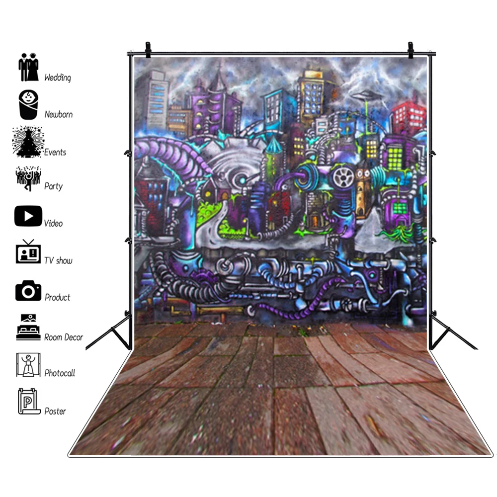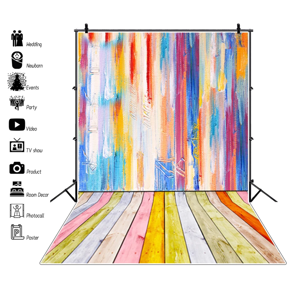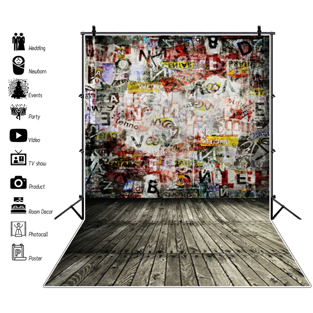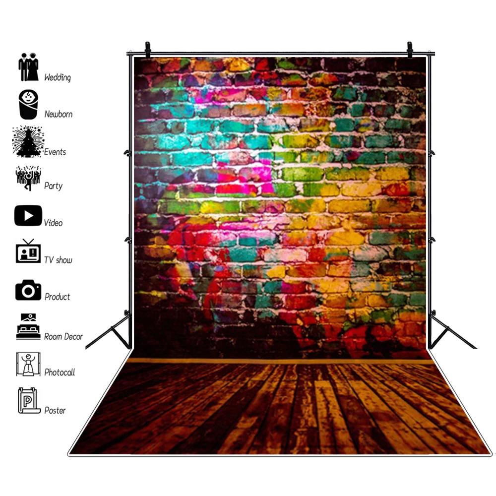 Laeacco красочный кирпич стена деревянный пол фотографии фоны граффити гранж винтажный портрет фото фоны Фотофон
