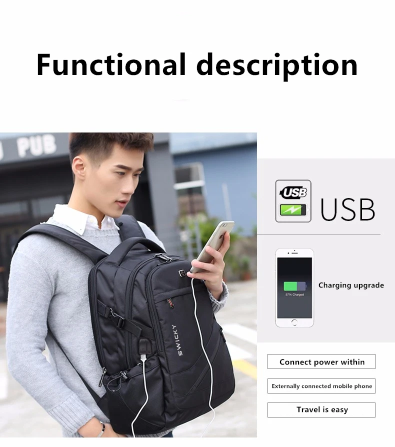 Рюкзак SWICKY для ноутбука 15,6 '', водонепроницаемый, с USB-зарядкой, MP3, для мужчин и женщин