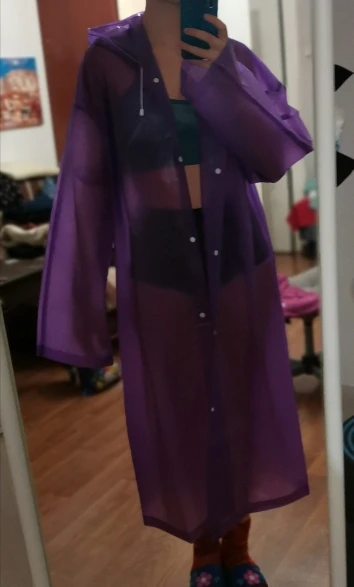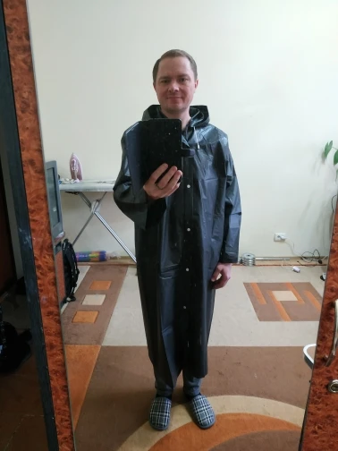 Плащ, чтобы спрятаться от дождя и добежать до магазина или остановки без зонтика, отличный! Широкий( у меня 50 размер), длинный (рост 1.58), с туго, под подбородком, застегивающимся капюшоном. Можно взять с собой в сумку, много места не займет. Продавец отличный, отправил посылку в день заказа и пришла она очень быстро. Продавца и товар рекомендую!