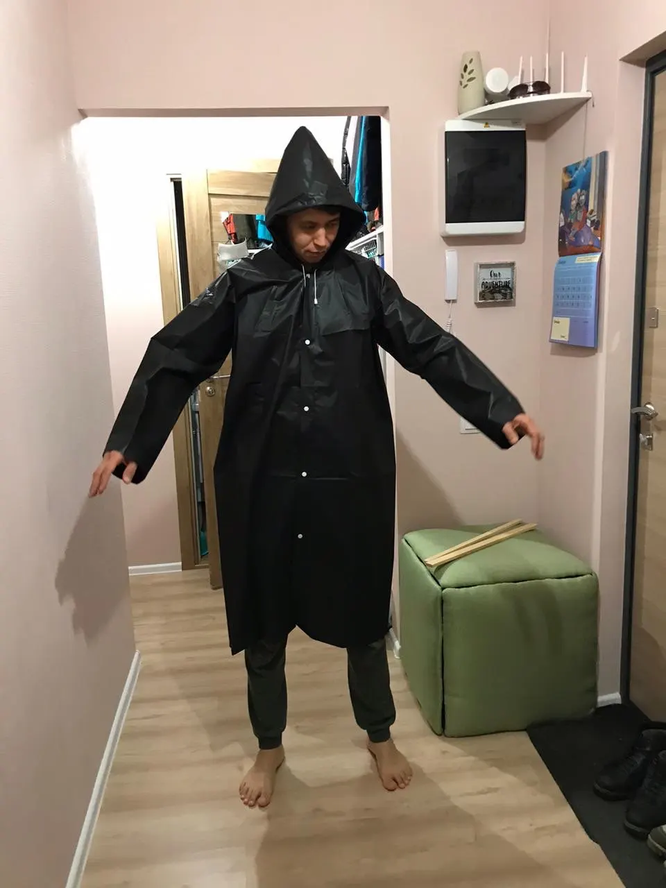 уже заказывал один раз этот плащ, заказал второй раз уже для себя. очень практично, тк во Владивостоке такие ветра, что с зонтиком не всегда походишь