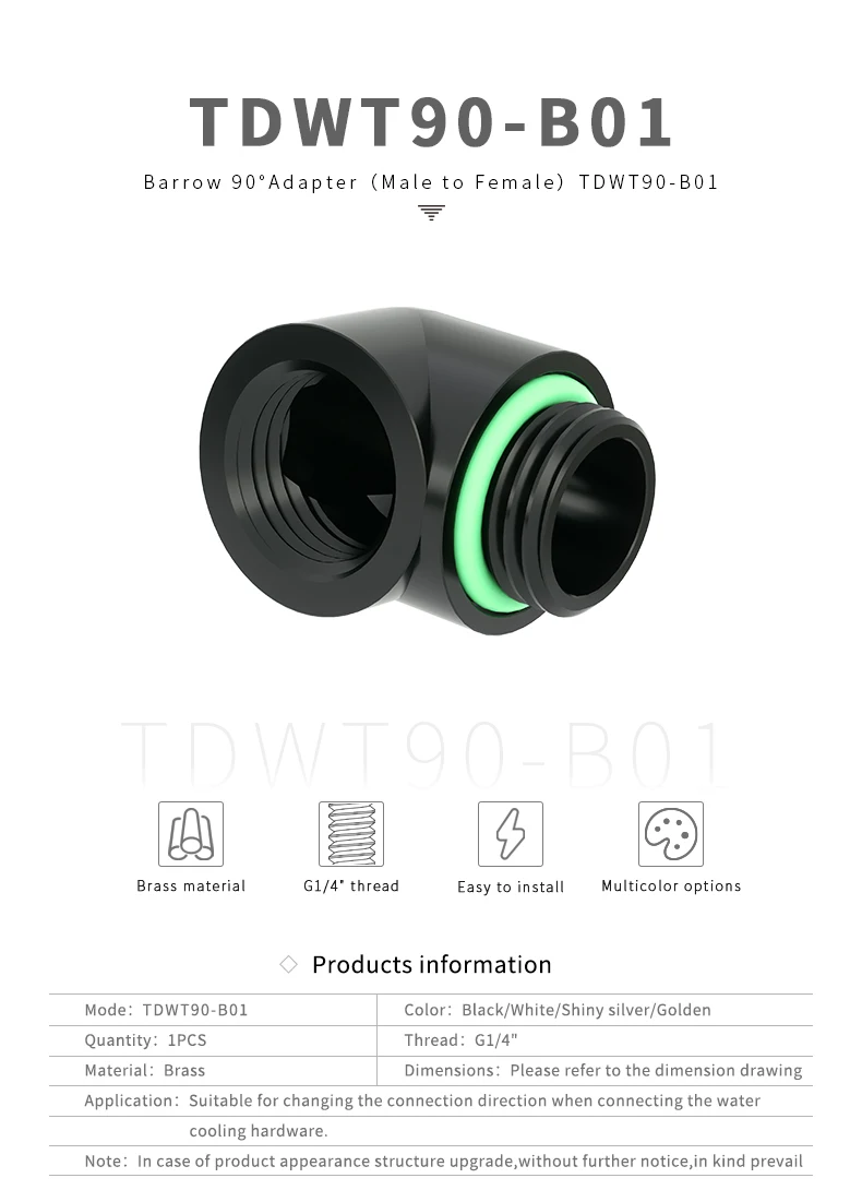 Адаптер для воды BARROW Gold Black Silver G14 '', адаптеры охлаждения воды, фитинги для охлаждения воды, 90 градусов