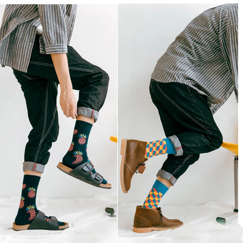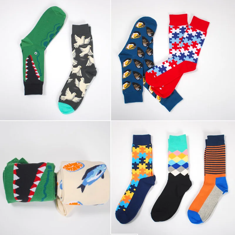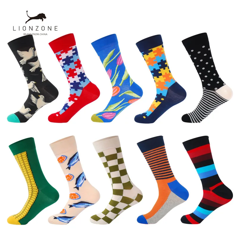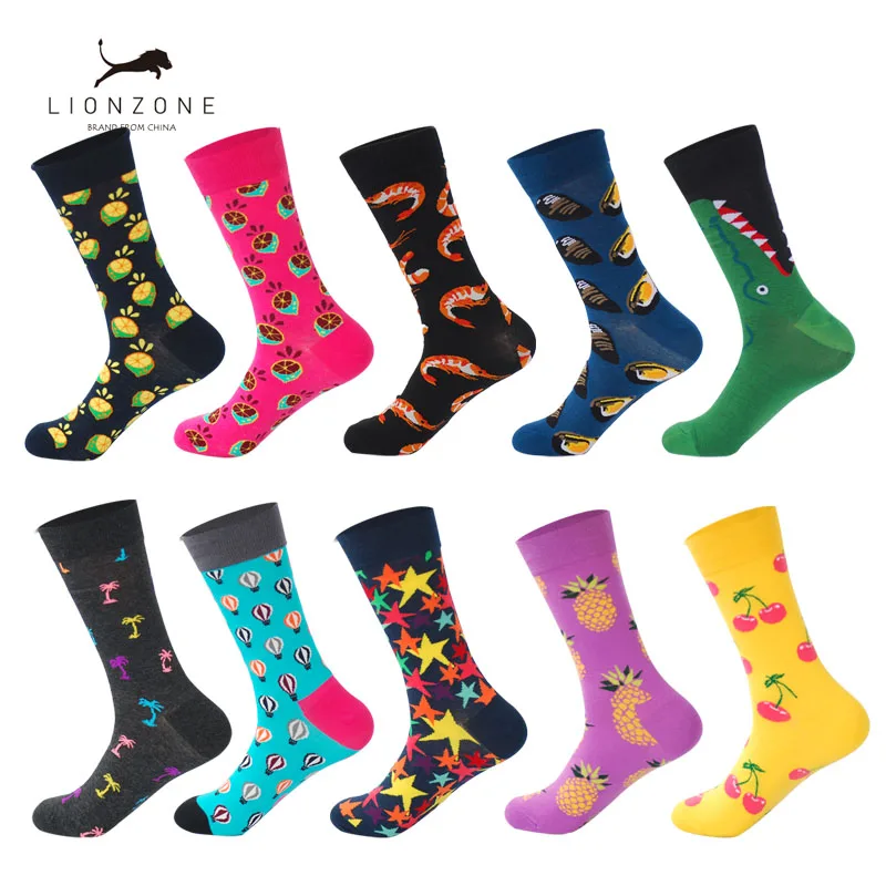 LIONZONE 10 парлот смешные мужские носки, Calcetines Divertidos подарки для мужчин Красочные дизайнерский бренд счастливые носки Meias Masculino