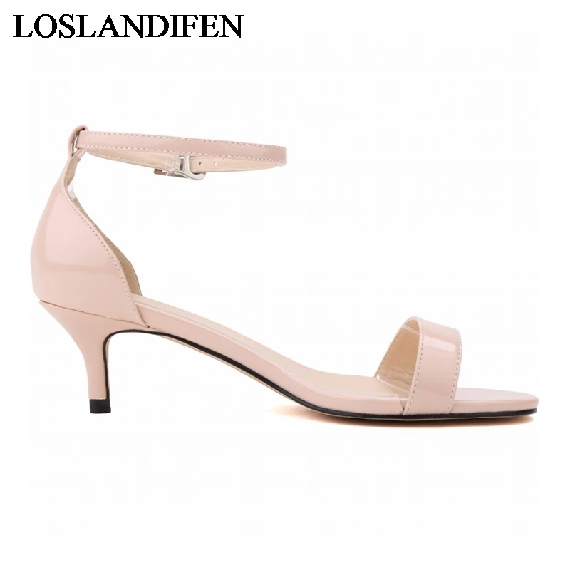 Элегантные женские туфли с открытым носком и ремешком на щиколотке; Босоножки на среднем каблуке; Пикантная женская свадебная обувь; NLK-C0114