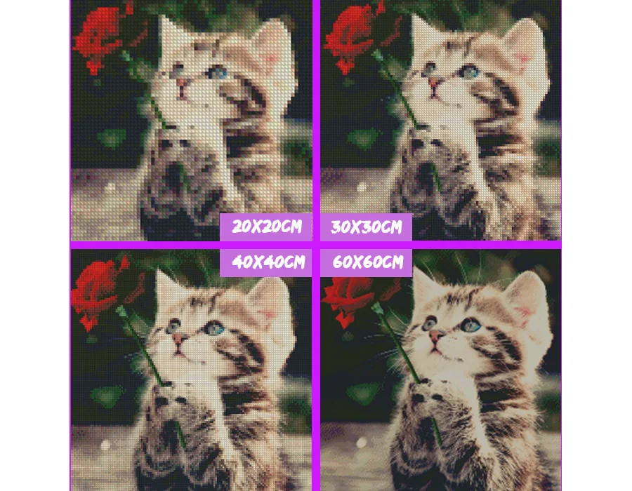 Дорогие друзья, из-за эффекта маленького размера не замечательно, это только для развлечения детей и практики новичков. Покупателям, которым нужен великолепный эффект, выбирайте большой размер. Более того, пожалуйста, не открывайте спор из-за небольшого размера, мы не берем на себя никакой ответственности. Как правило, сложные красочные изображения с изящными деталями требуют большего размера, чтобы выразить детали. И если вы хотите общий взгляд на эффект каждого размера, следующее изображение только для справки. Вы также можете оставить нам сообщение, если вам нужен больший размер или у вас есть другие вопросы.