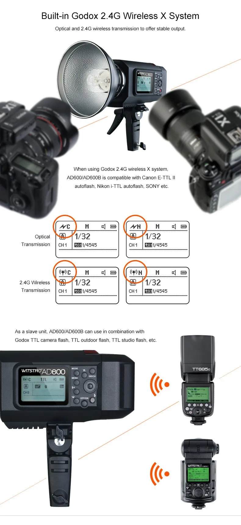 • Беспроводная вспышка (Оптическая передача и передача 2,4G)