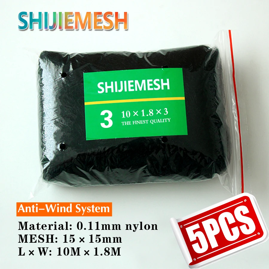 Высококачественные большие карманы 10 м x 1,8 м 15 мм, садовая сетка против птиц, нейлоновая однонитевая сетка 0,11 мм, узелковая сетка для тумана, 5 шт.