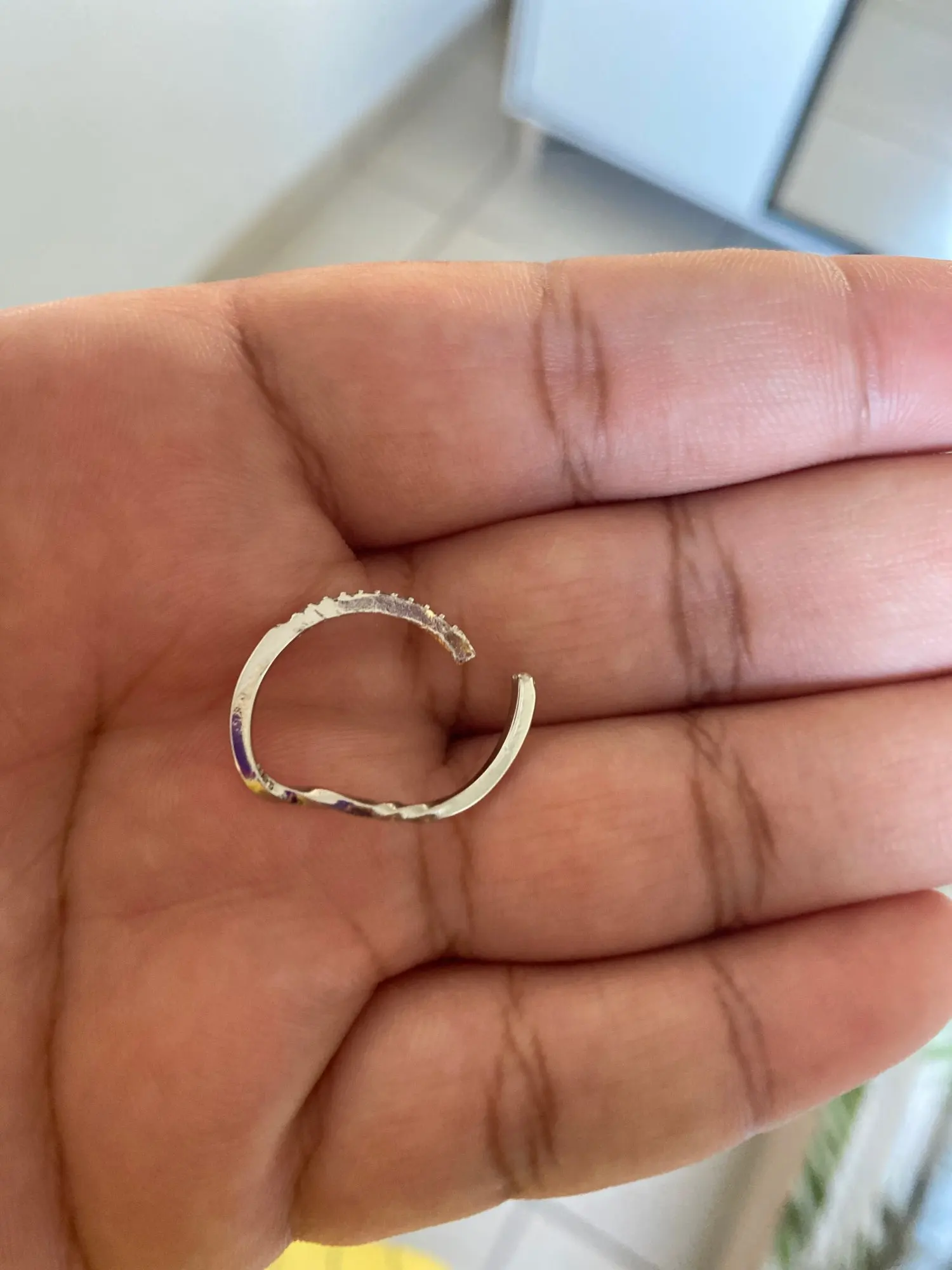 Очень медленно прибывает, но стоит того, кольцо очень красивое и хорошо пропускает воздух, выглядит белым золотом с бриллиантами. Достаточно большой, чтобы использовать в пальцах. Был второй заказанный, есть еще один такой, который использует более 6 месяцев, уже reajustei несколько раз для различных размеров и выдерживает никогда не и не остается красивым.