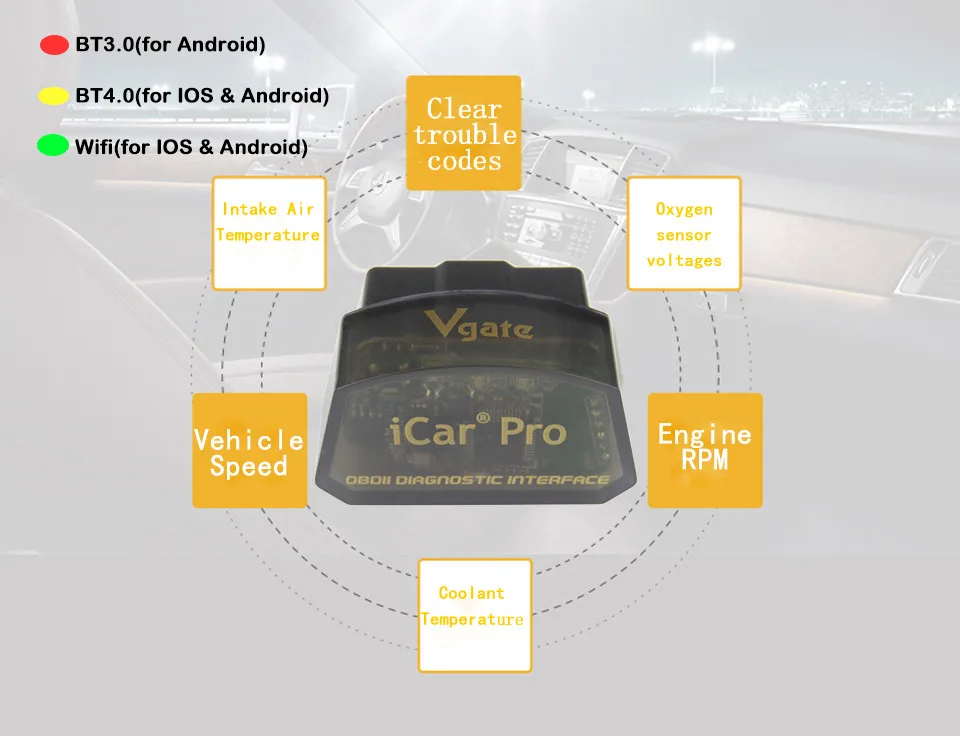 Vgate iCar Bluetooth 4,0/3,0/wifi ELM327 характеристики: