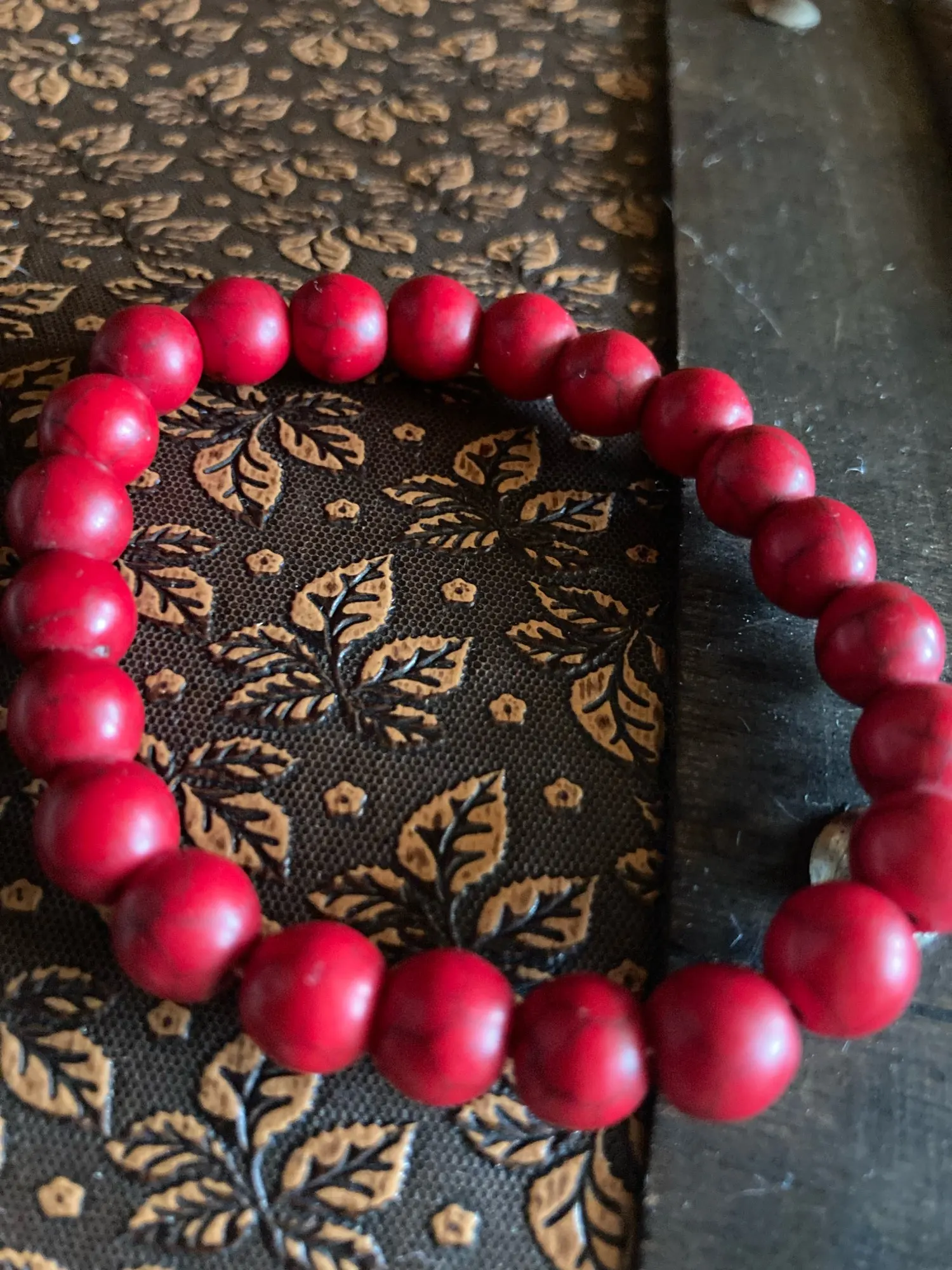 Новый очаровательный браслет из Красного искусственного камня 8 мм для мужчин, Женский Круглый браслет, ювелирные изделия