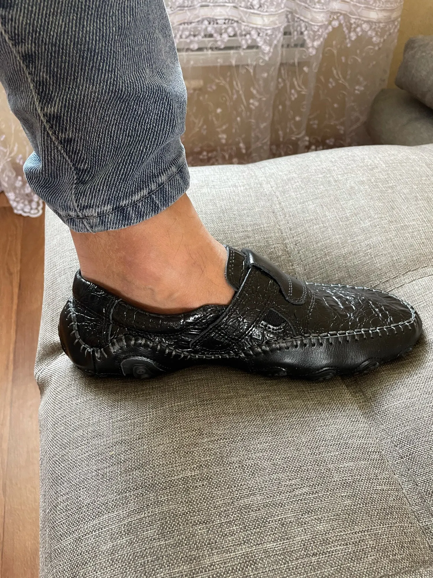 Мужские мокасины из крокодиловой кожи JKPUDUN, черные повседневные ...