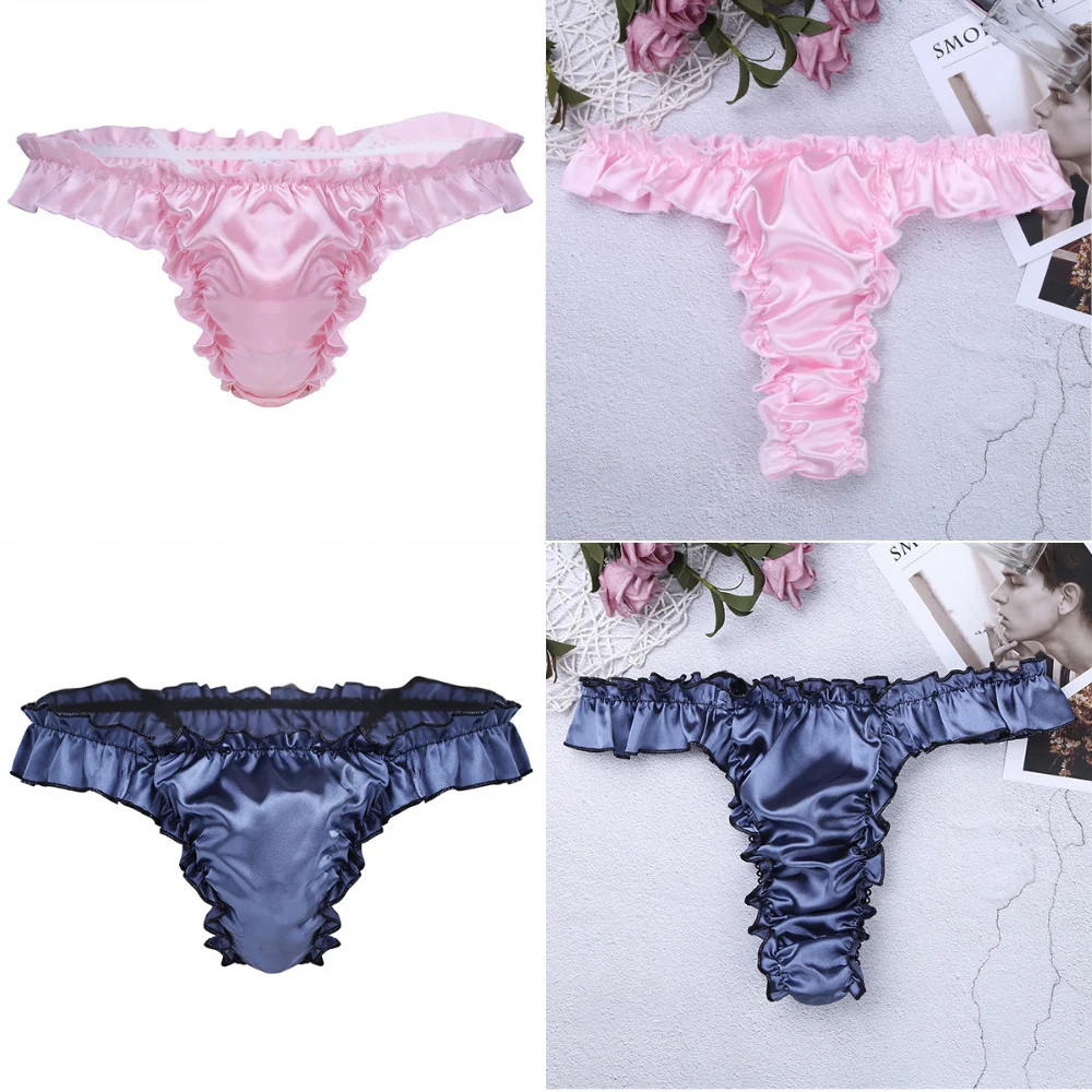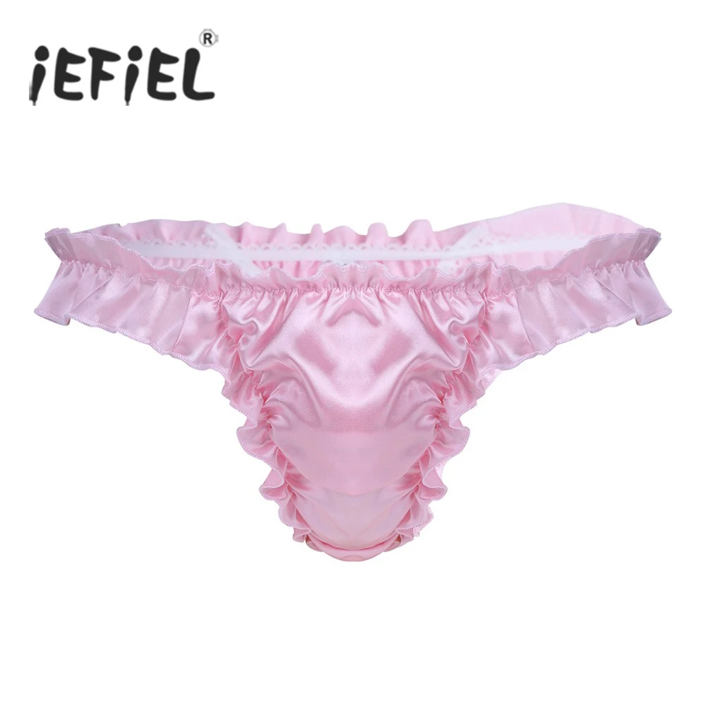 IEFiEL мужские блестящие гофрированные трусы с рюшами, с открытой спиной и высоким вырезом, трусы-джоки, гей-трусы