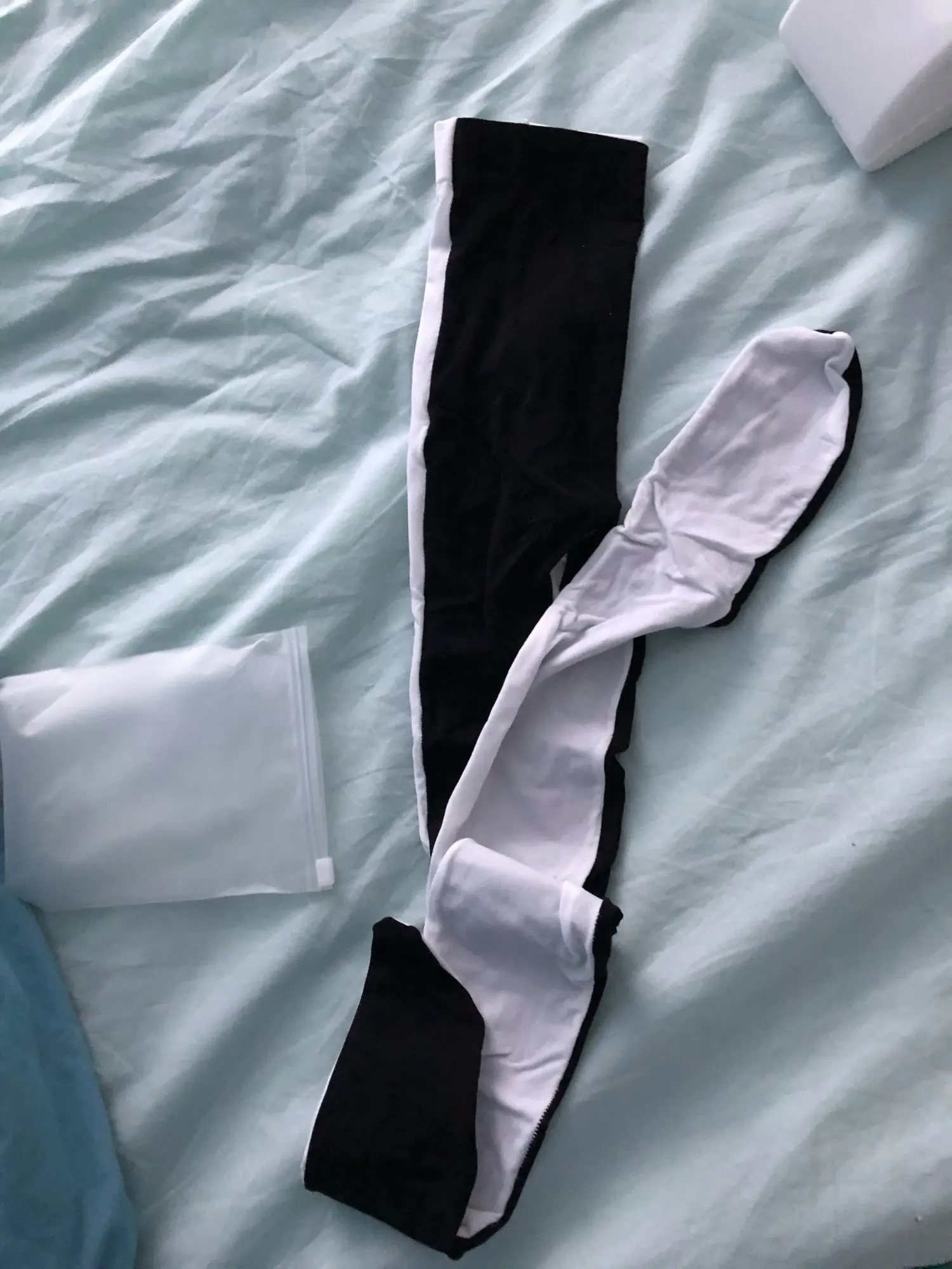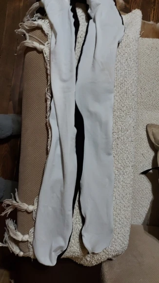 Попутали цвета. Впереди стал, чёрный, сзади белый, т.к. на колготка два задних шва, перевернуть не возможно. В первый же день стали рваться на швах соединения чёрной и белой стороны. Колготки эффектные, но на один раз и нет гарантии, что швы не порваться сразу. Не много маломерки, сползают....