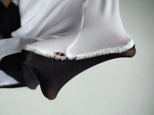 На изображении нет шва между белым и черным, но шов на самом деле очень грубый. Материал хороший, но носок очень маленький. Есть 1,68 м и был мал. Стыд.