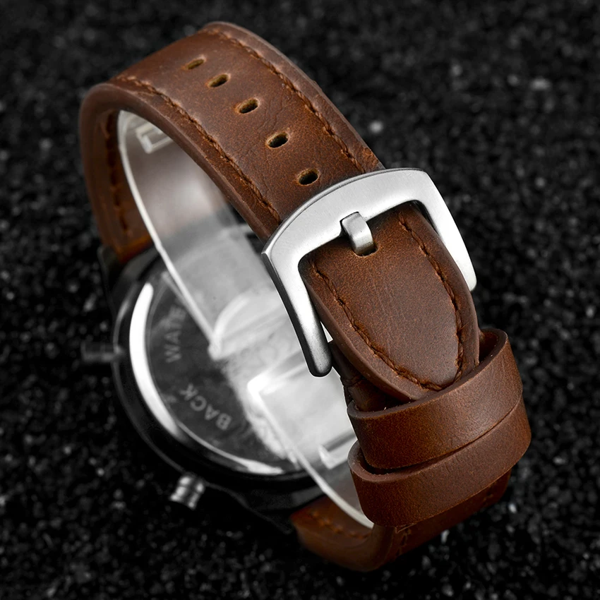 Часы наручные мужские кварцевые аналоговые, люксовые Брендовые спортивные в стиле милитари, для плавания, с кожаным ремешком