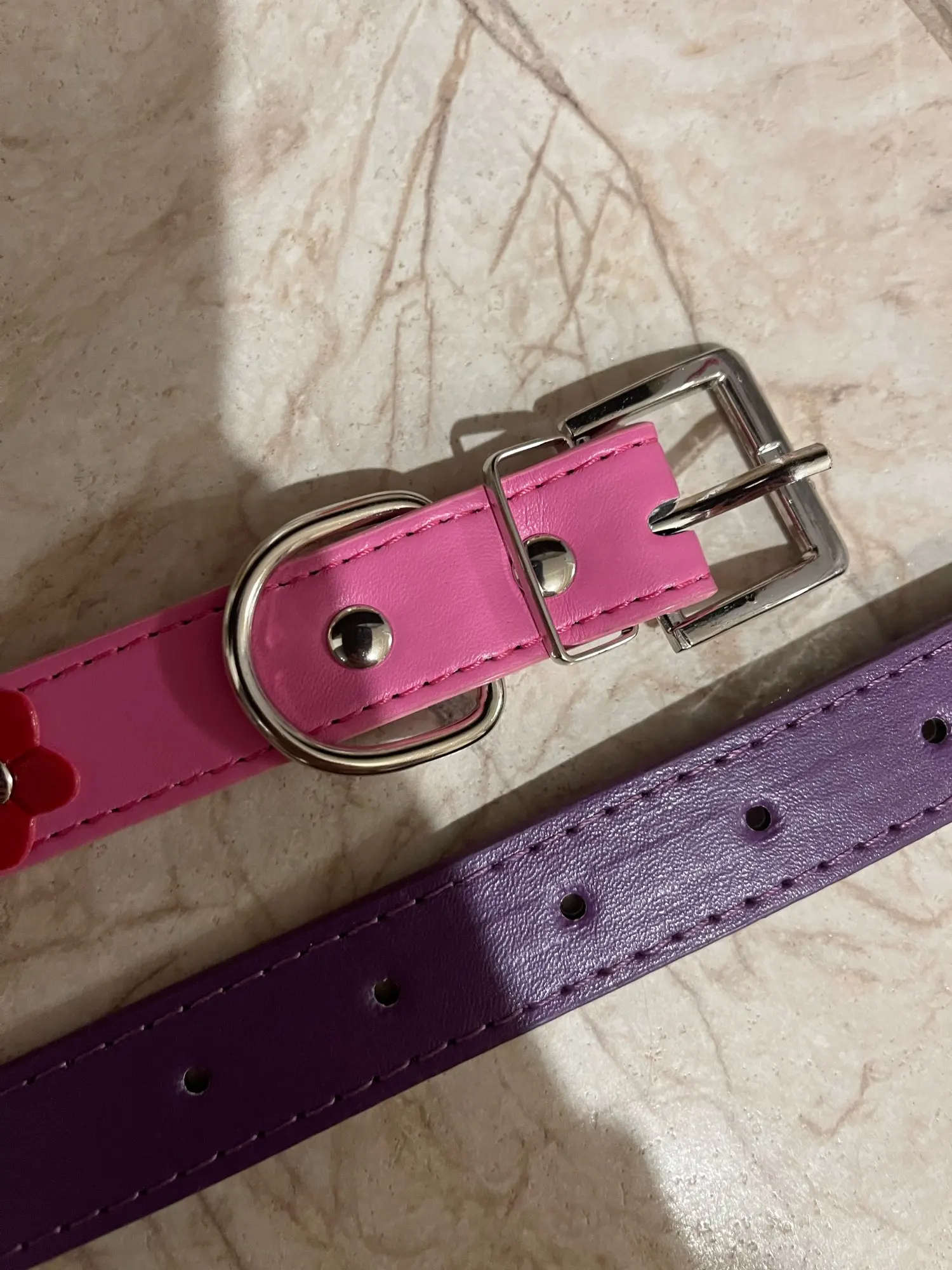 Ошейник для собак из искусственной кожи, с цветами, поводок для кошек, цепочка на шею для мелких и средних и крупных животных, Тедди, чихуахуа, Мопса