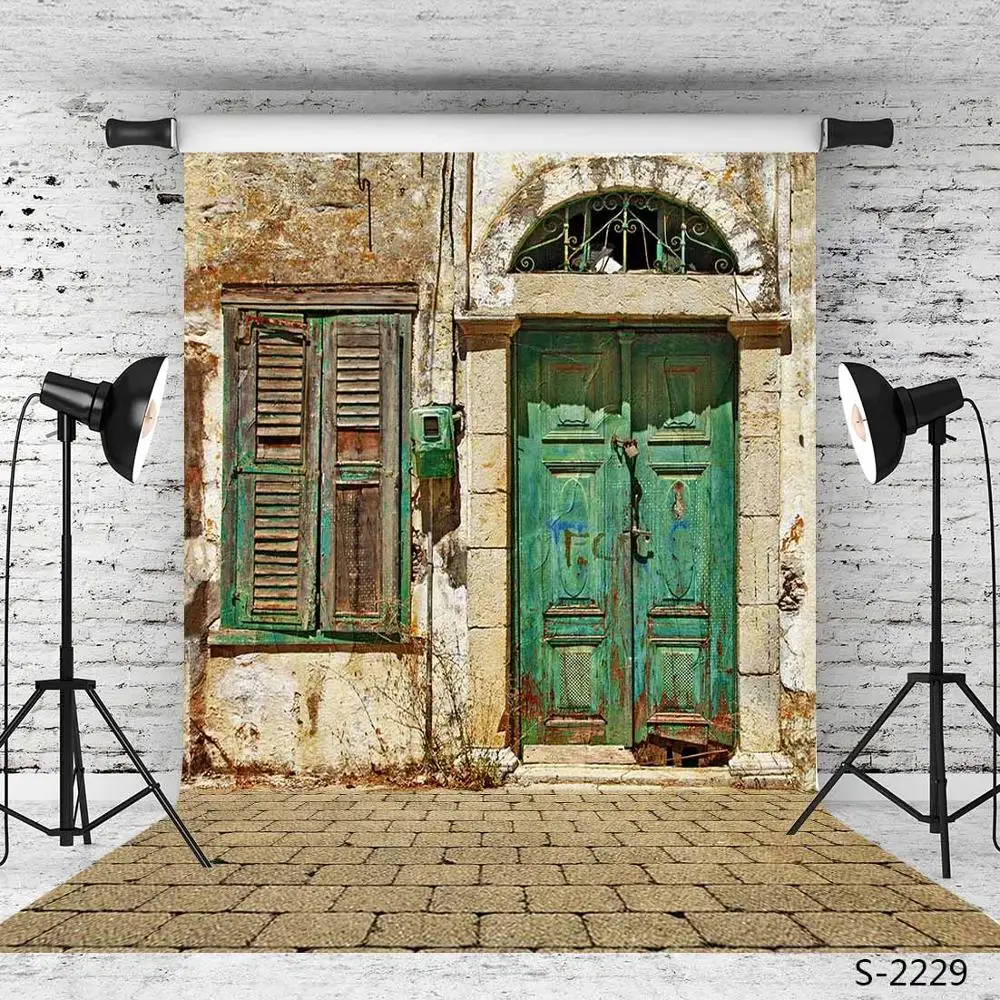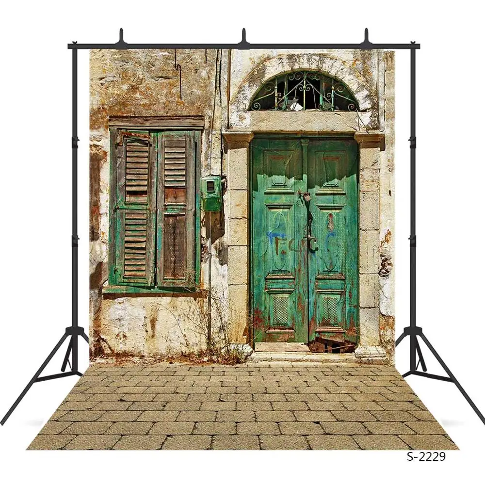Виниловый тканевый фон для студийной фотосъемки свадьбы детей малышей со старым домом зеленой дверью окном