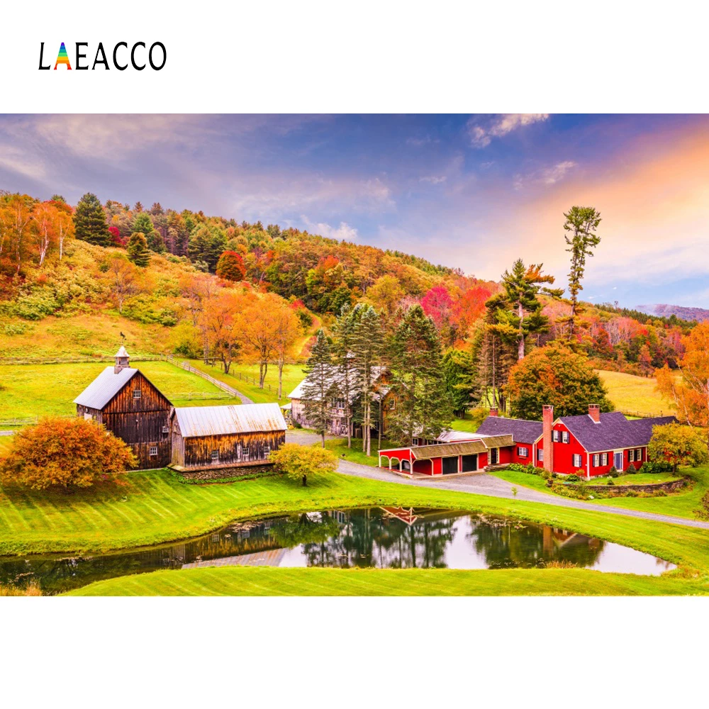 Фон для фотосъемки Laeacco с изображением сельской местности, зеленого дома, реки, горы, дерева, голубого неба, для фотостудии