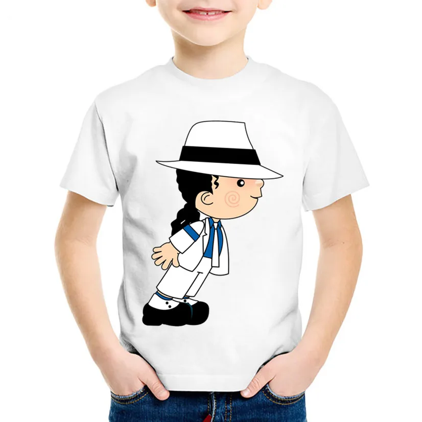 Детская забавная футболка с рисунком Майкла Джексона, детские летние топы в стиле рок-н-ролл, повседневная одежда для маленьких мальчиков и девочек, oHKP5144