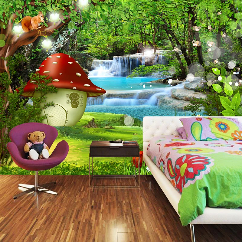 Пользовательские 3D плакат обои мультфильм лесных грибов дом Фреска...